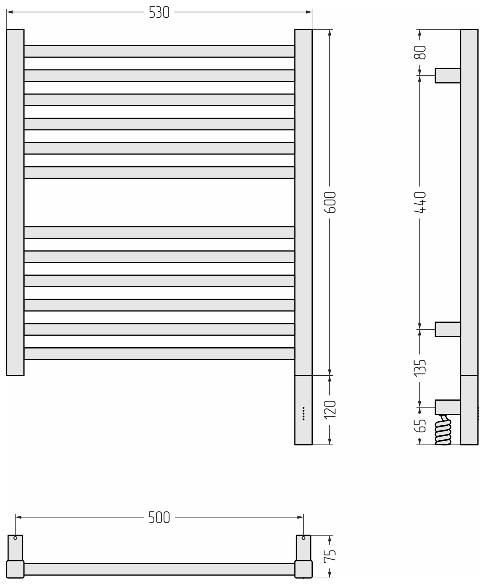 Полотенцесушитель электрический Сунержа Модус 3.1 П12 500x720 мм 15-5901-6050 R, тёмный титан муар