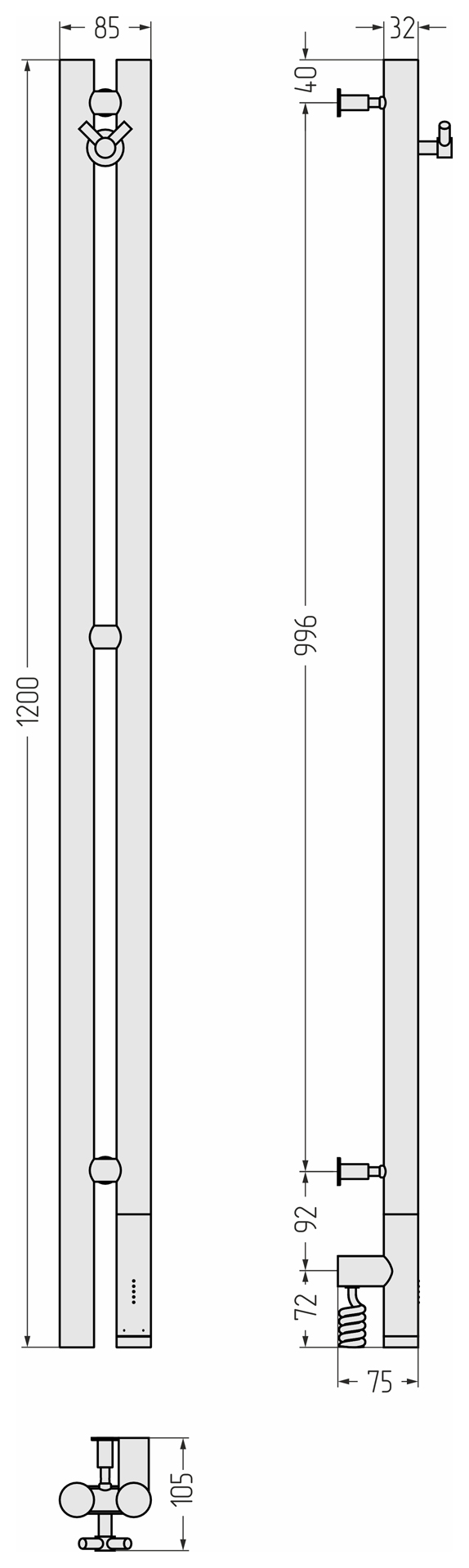 Полотенцесушитель электрический Сунержа Нюанс 3.0 П2 100x1200 мм 15-5843-1253 R, тёмный титан муар