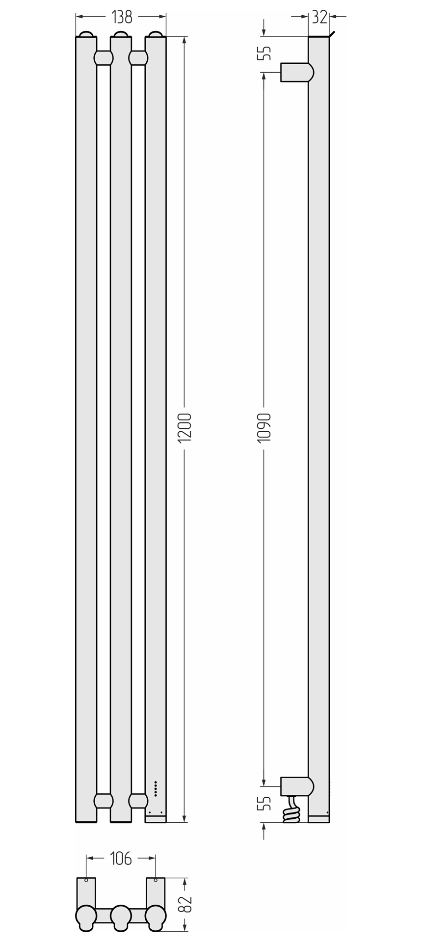 Полотенцесушитель электрический Сунержа Терция 4.0 П3 100x1200 мм 071-0883-1206 R, сатин