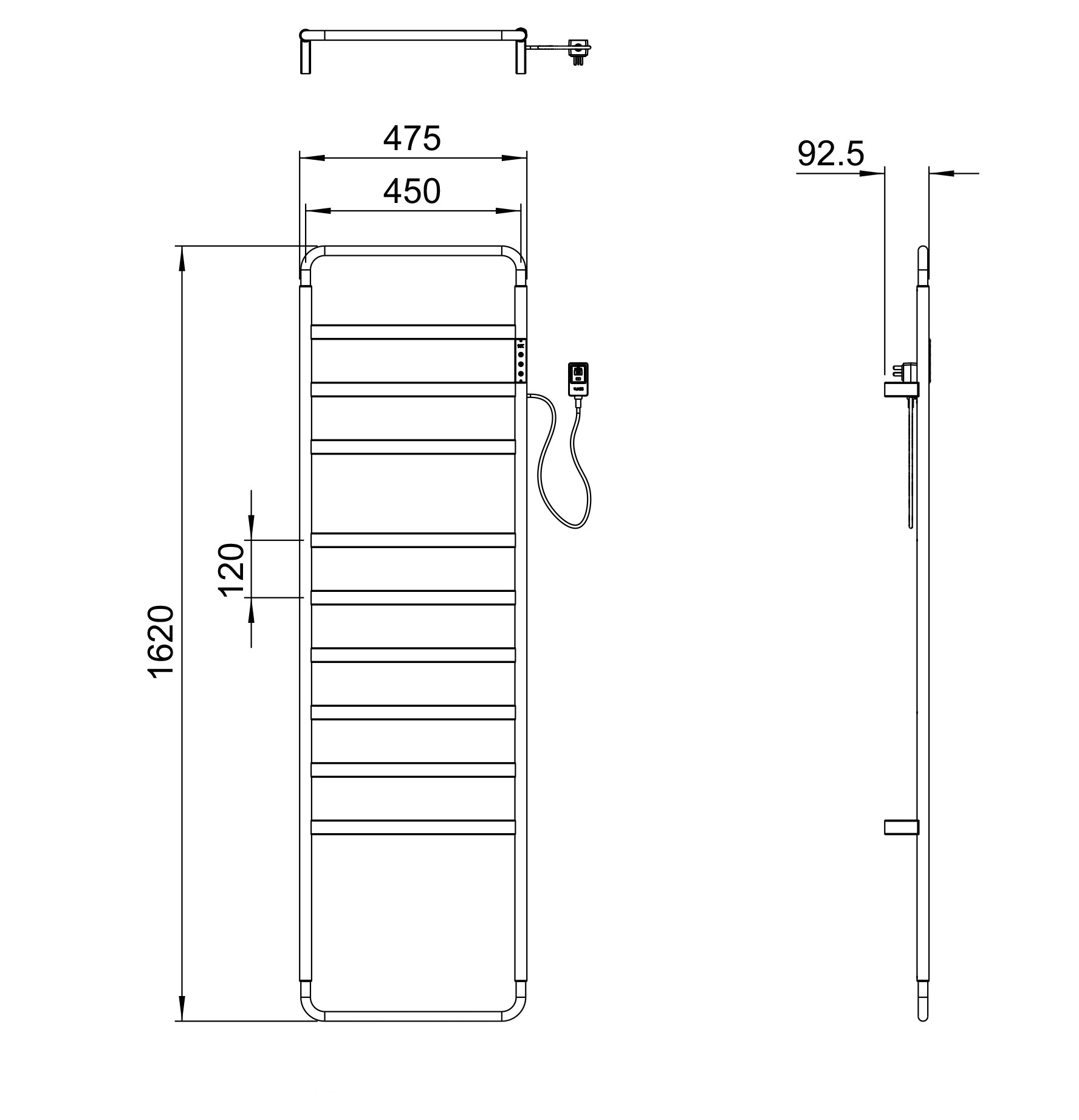 Полотенцесушитель электрический Wonzon & Woghand Düsseldorf П11 450x1620 мм WW-A204-MB, чёрный