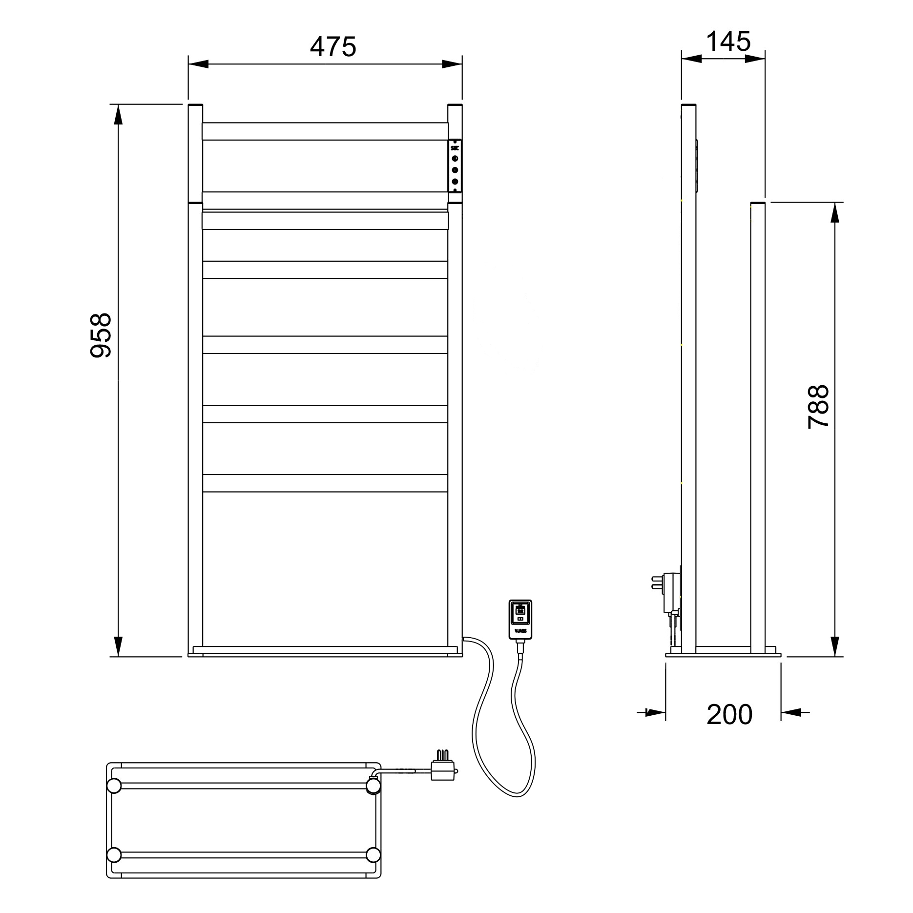 Полотенцесушитель электрический Wonzon & Woghand Essen П7 475x958 мм WW-A407-GM, темный графит