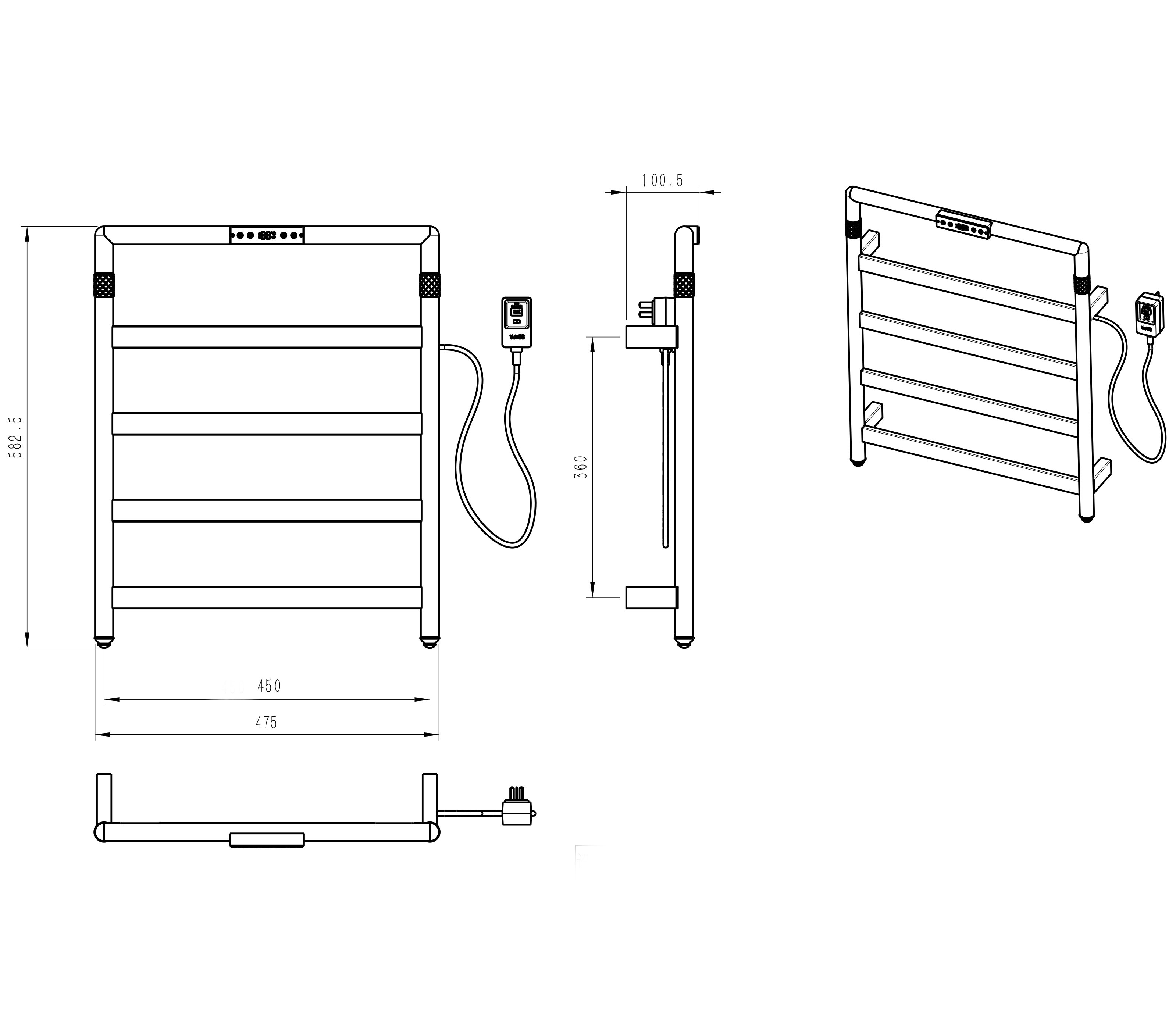 Полотенцесушитель электрический Wonzon & Woghand Köln П5 450x582 мм WW-A6014-GM, темный графит
