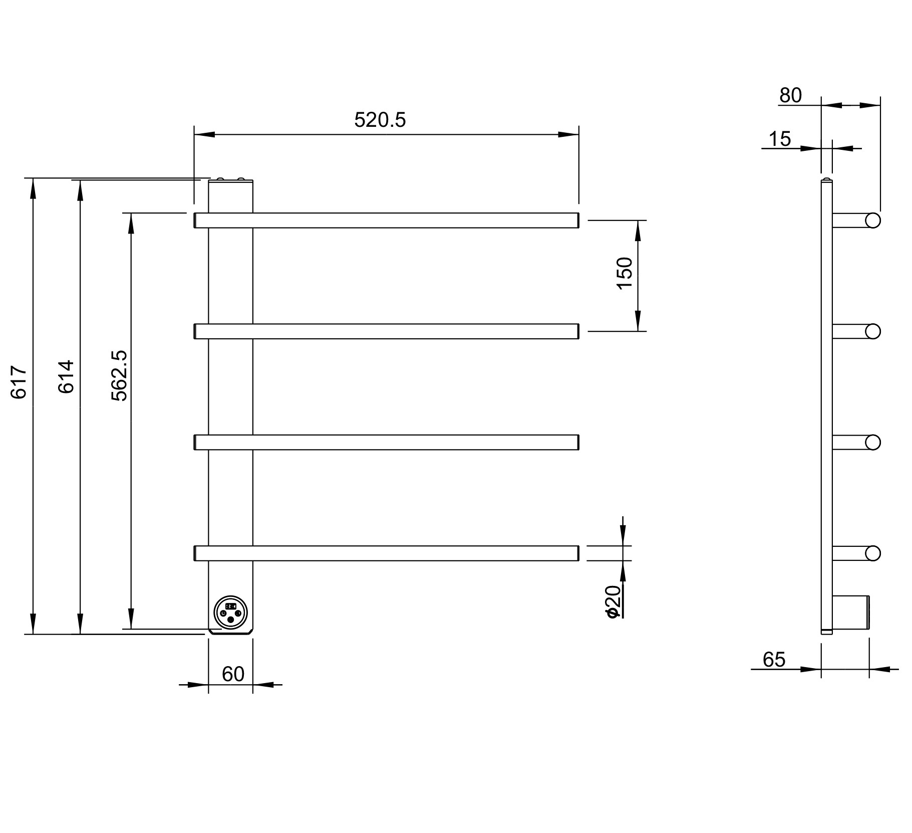 Полотенцесушитель электрический Wonzon & Woghand Nürnberg П4 520x617 мм WW-AL344-MB, чёрный