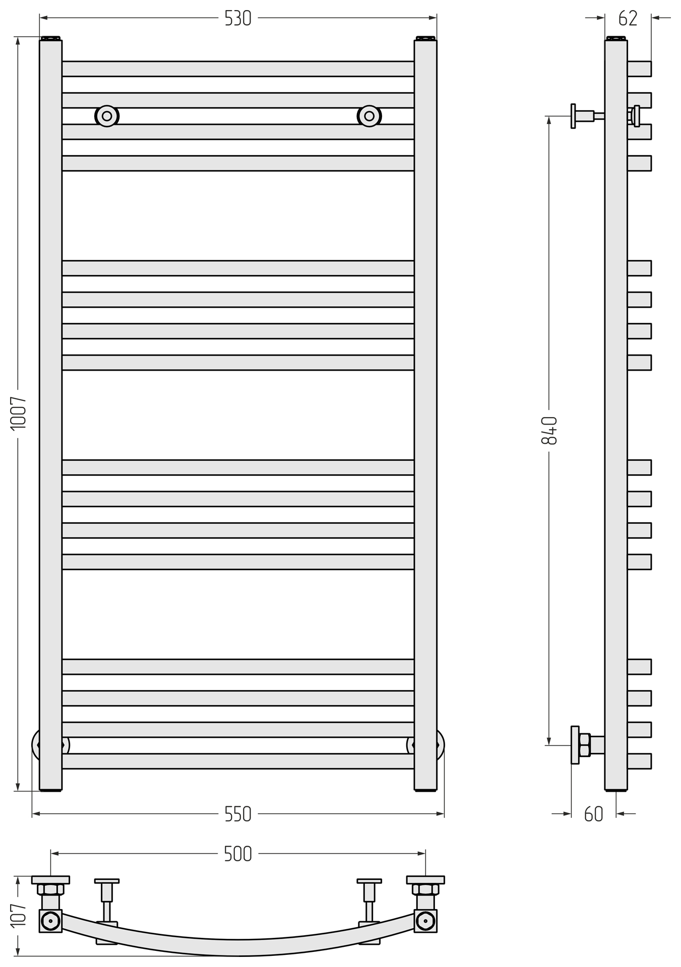 Полотенцесушитель водяной Сунержа Аркус П16 500x1000 мм 022-0251-1050, шампань матовый