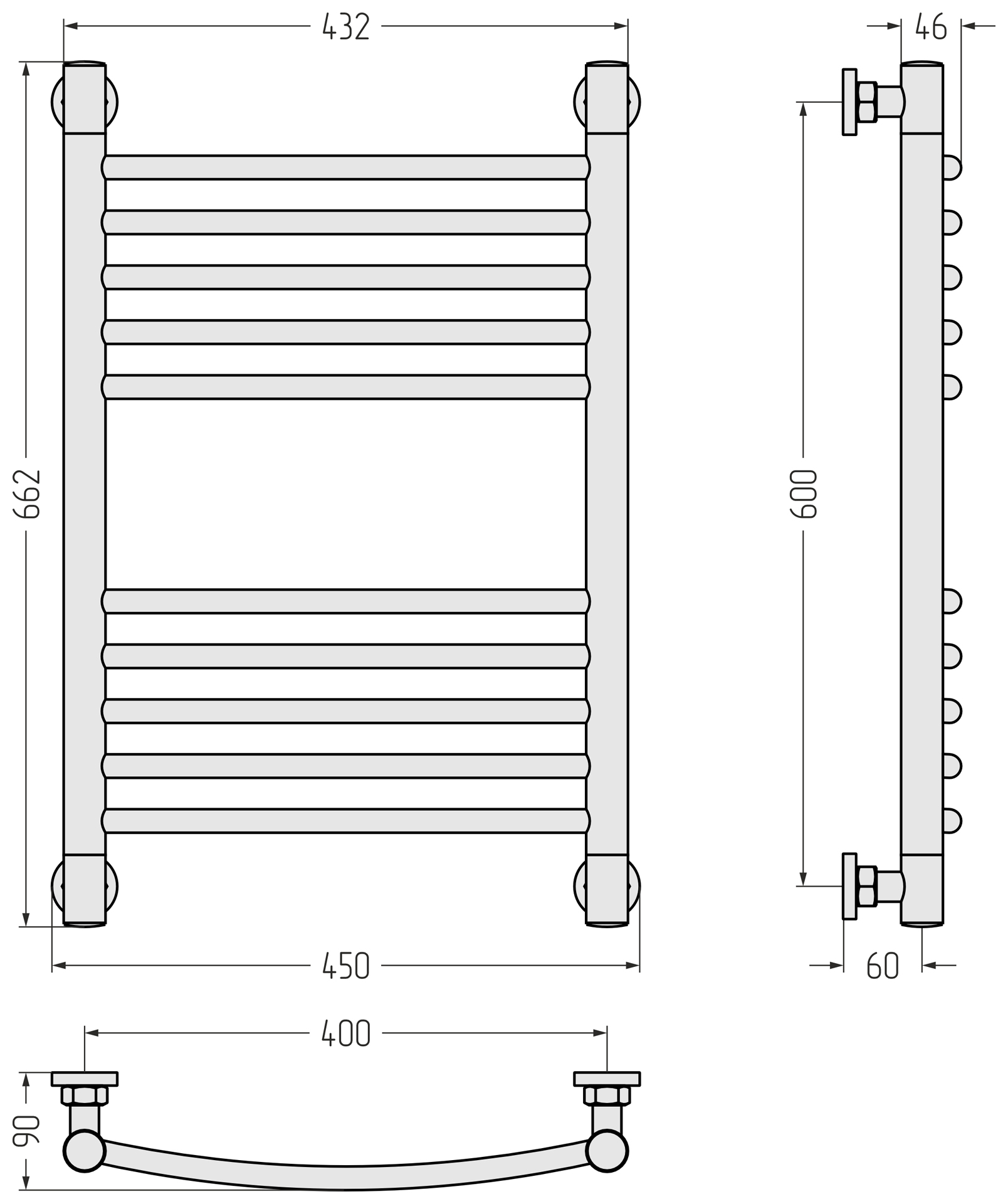 Полотенцесушитель водяной Сунержа Богема+ П10 400x660 мм (выгнутая перемычка) 31-0221-6040, чёрный матовый