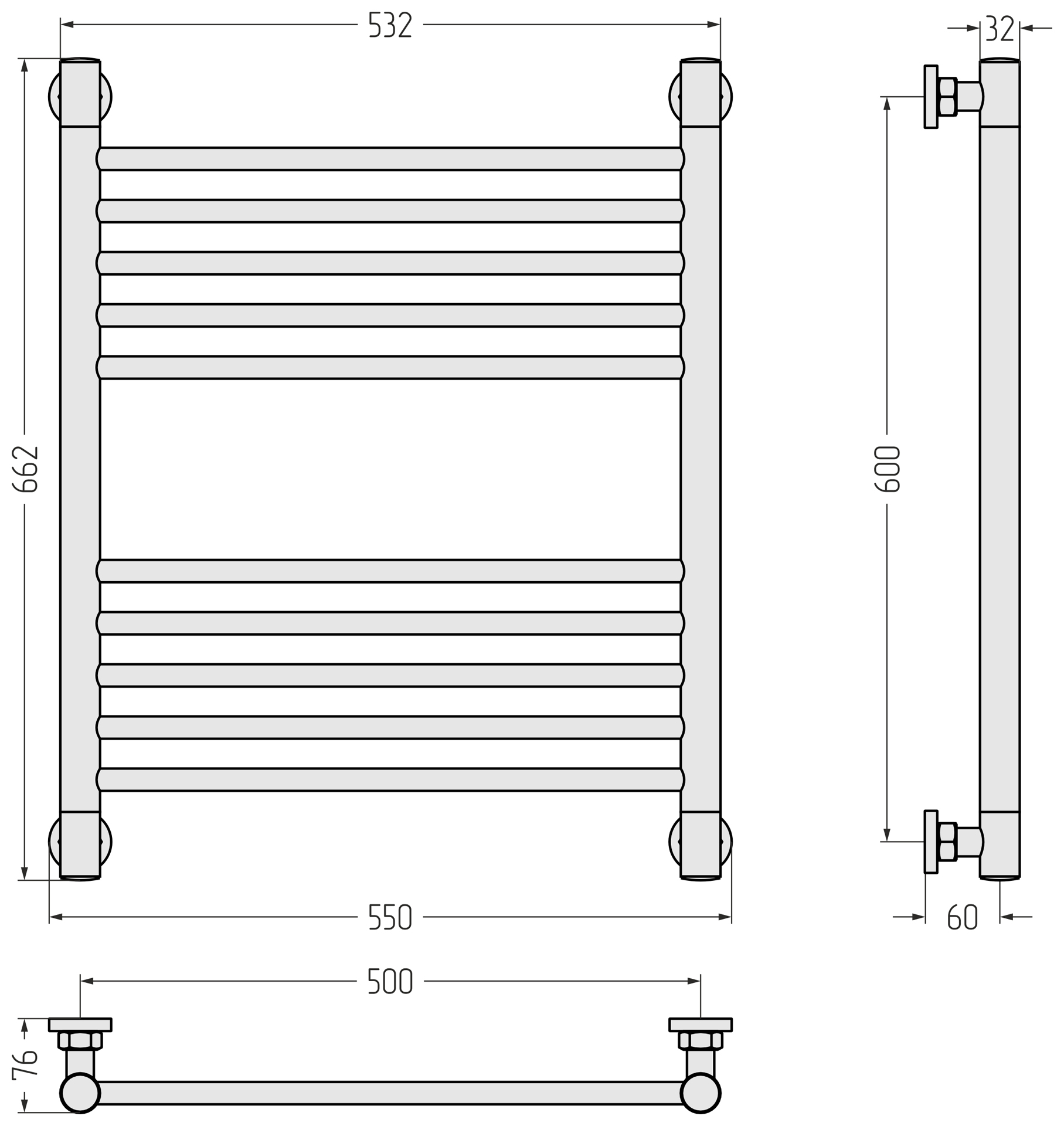 Полотенцесушитель водяной Сунержа Богема+ П10 500x660 мм (прямая перемычка) 022-0220-6050, шампань матовый
