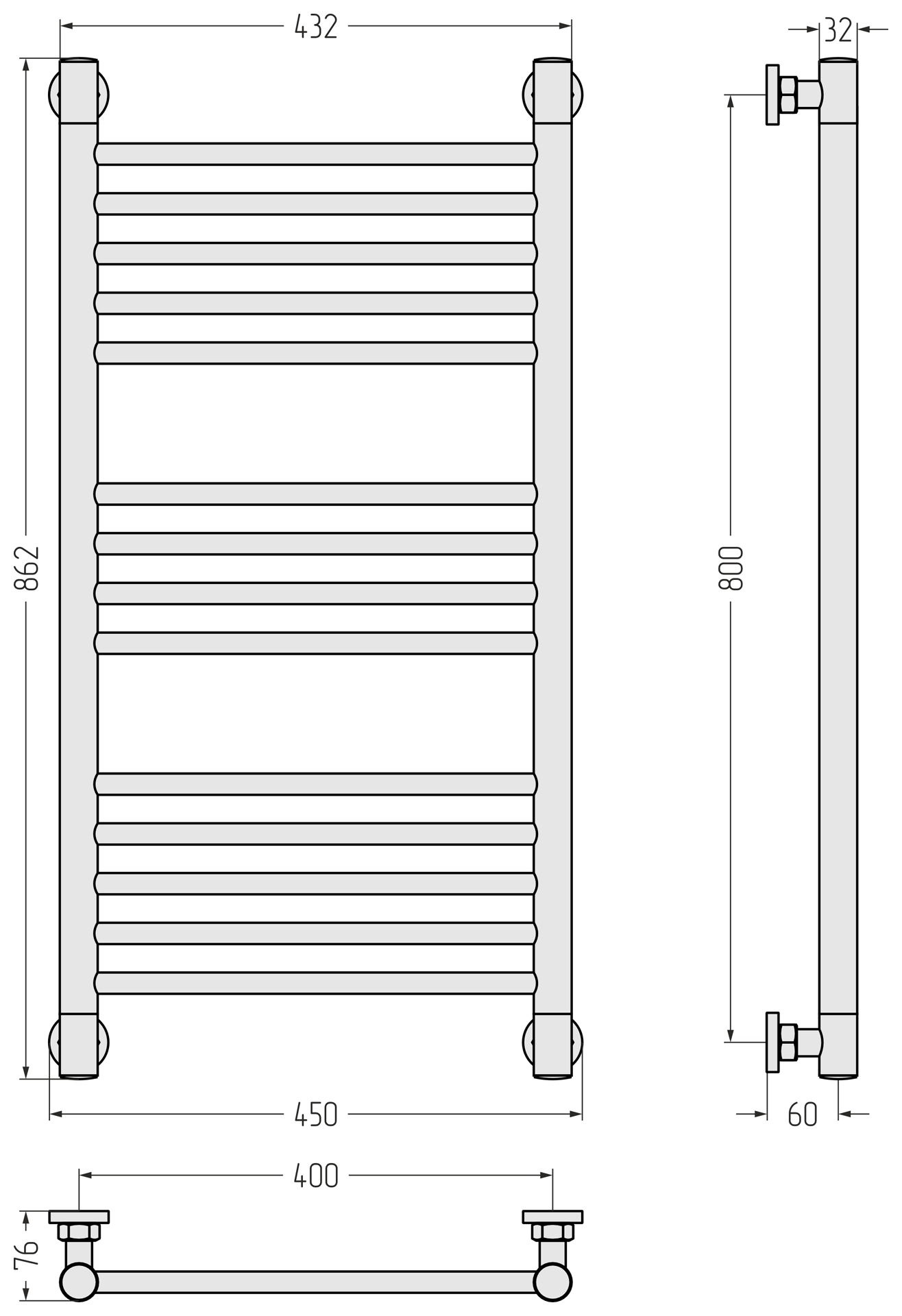 Полотенцесушитель водяной Сунержа Богема+ П14 400x860 мм (прямая перемычка) 022-0220-8040, шампань матовый