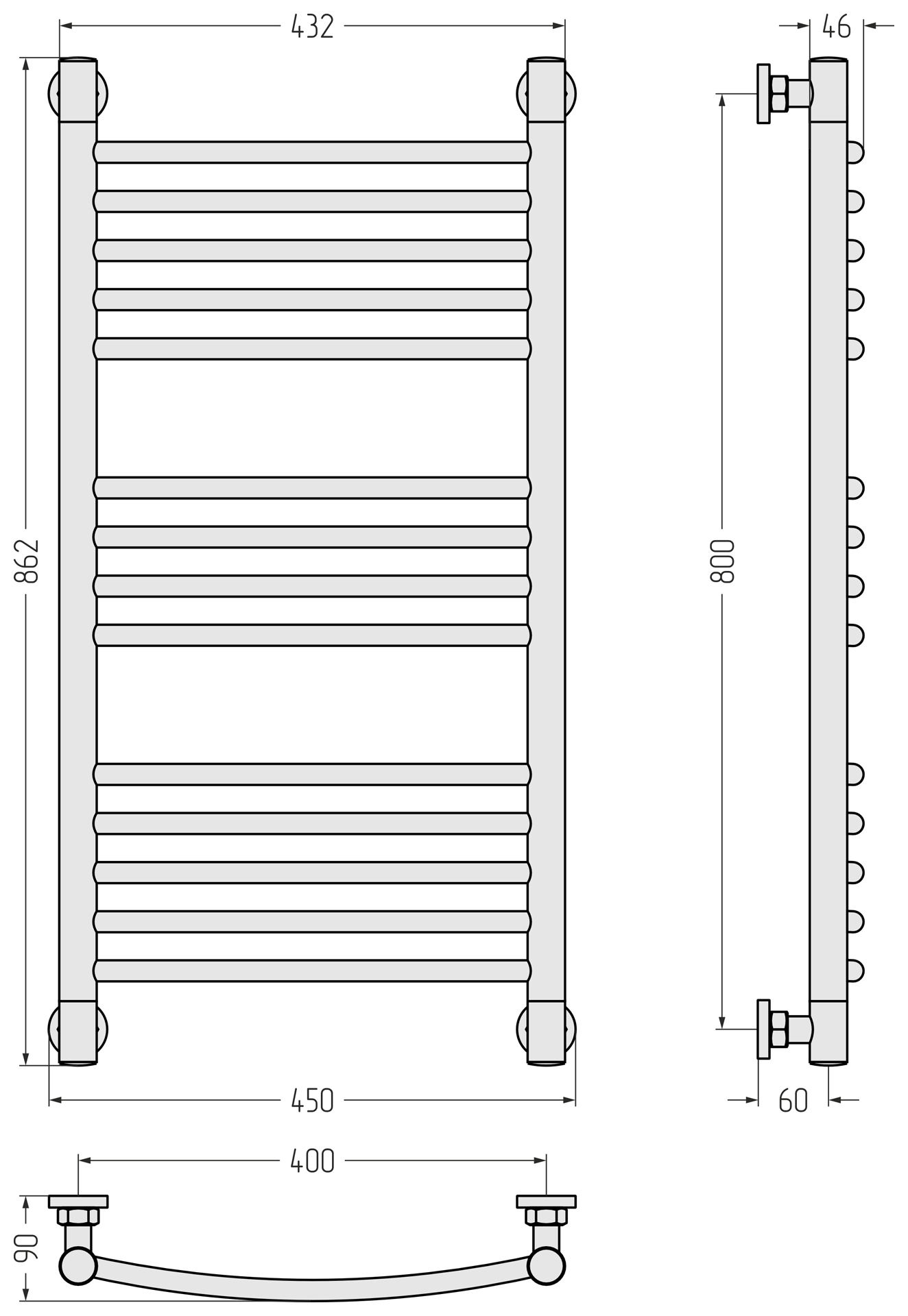 Полотенцесушитель водяной Сунержа Богема+ П14 400x860 мм (выгнутая перемычка) 15-0221-8040, тёмный титан муар
