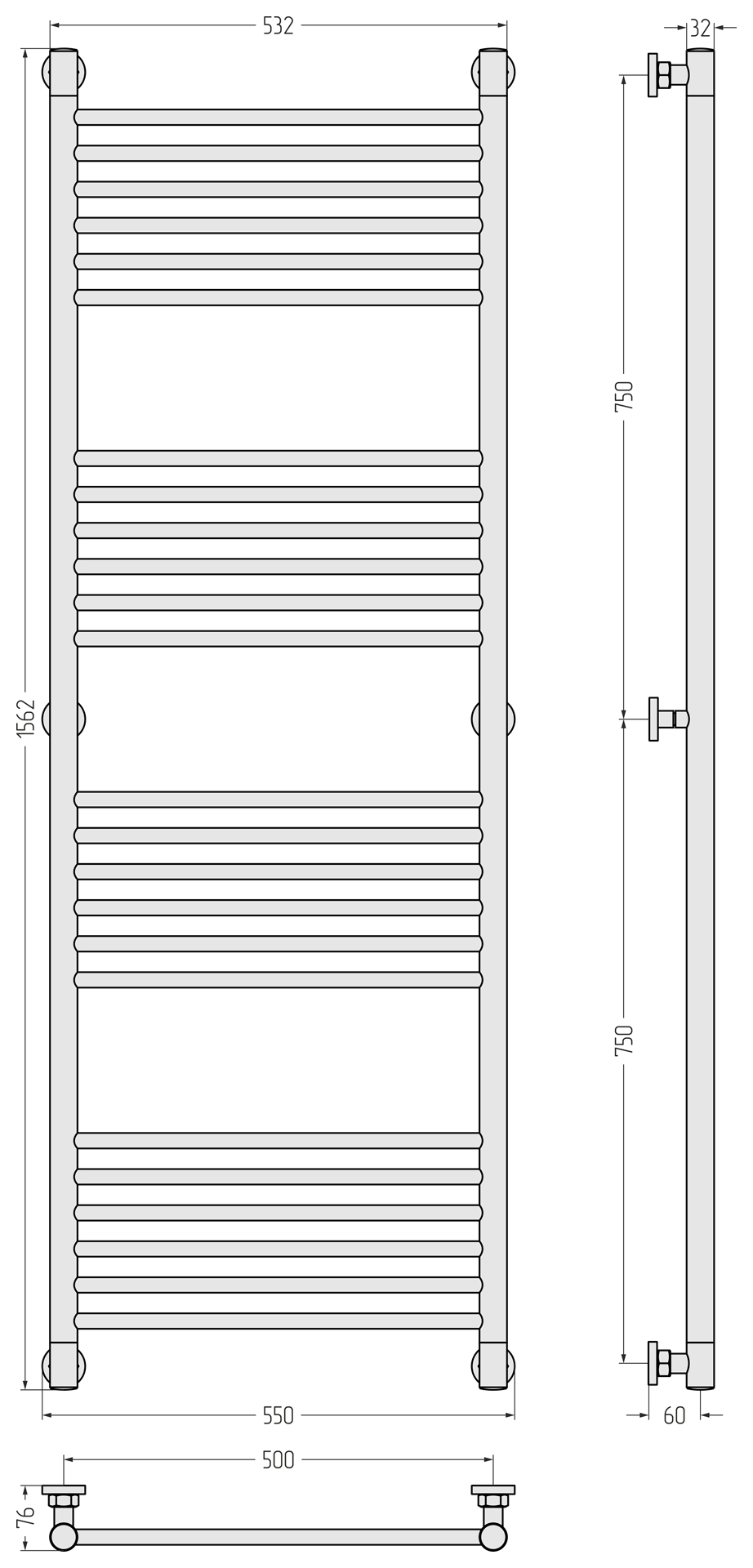 Полотенцесушитель водяной Сунержа Богема+ П24 500x1560 мм (прямая перемычка) 31-0220-1550, чёрный матовый