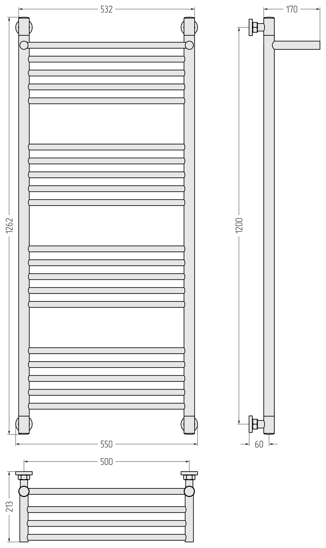 Полотенцесушитель водяной Сунержа Богема+ с полкой П20 500x1260 мм 31-0223-1250, чёрный матовый