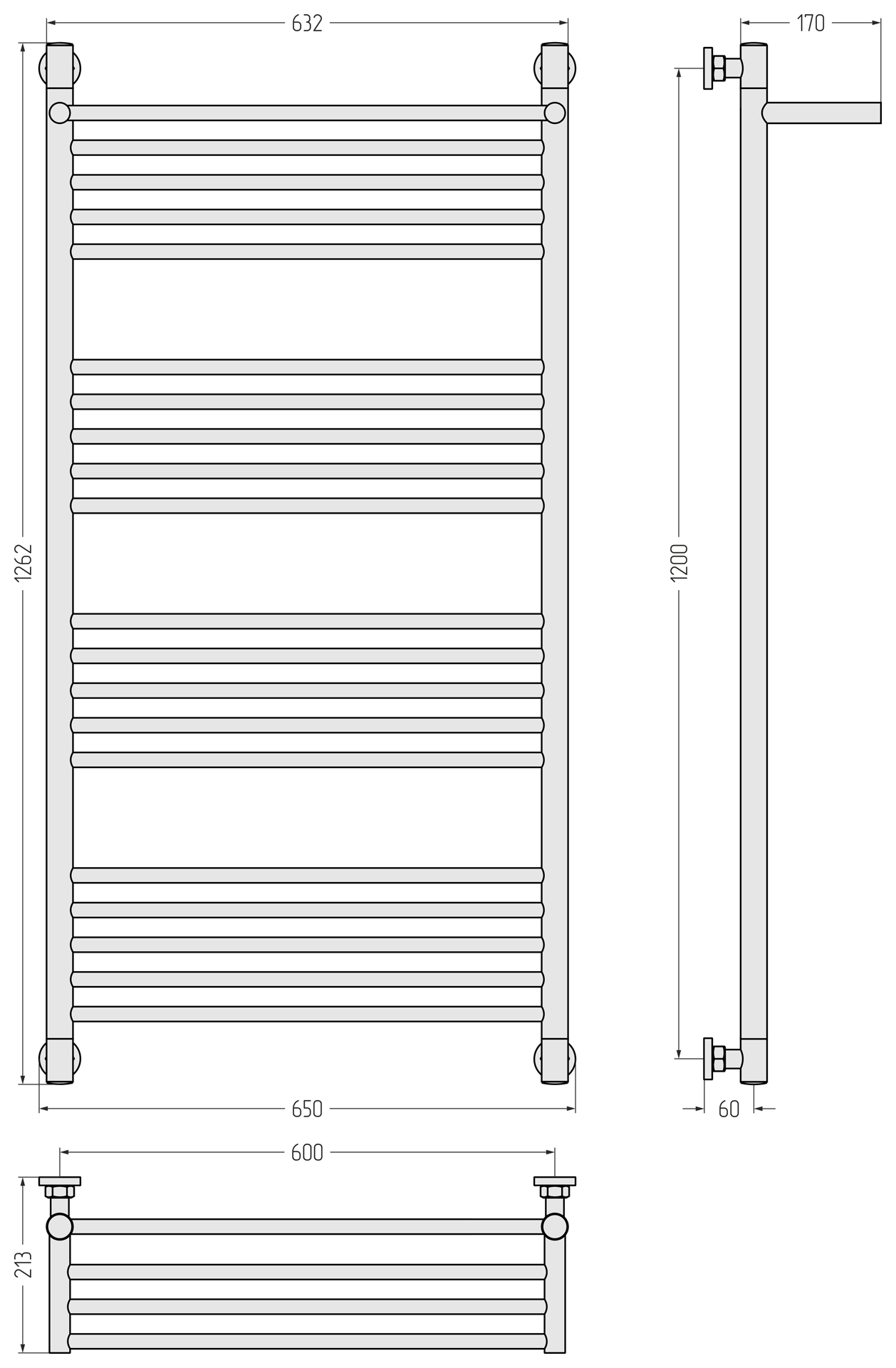 Полотенцесушитель водяной Сунержа Богема+ с полкой П20 600x1260 мм 071-0223-1260, сатин