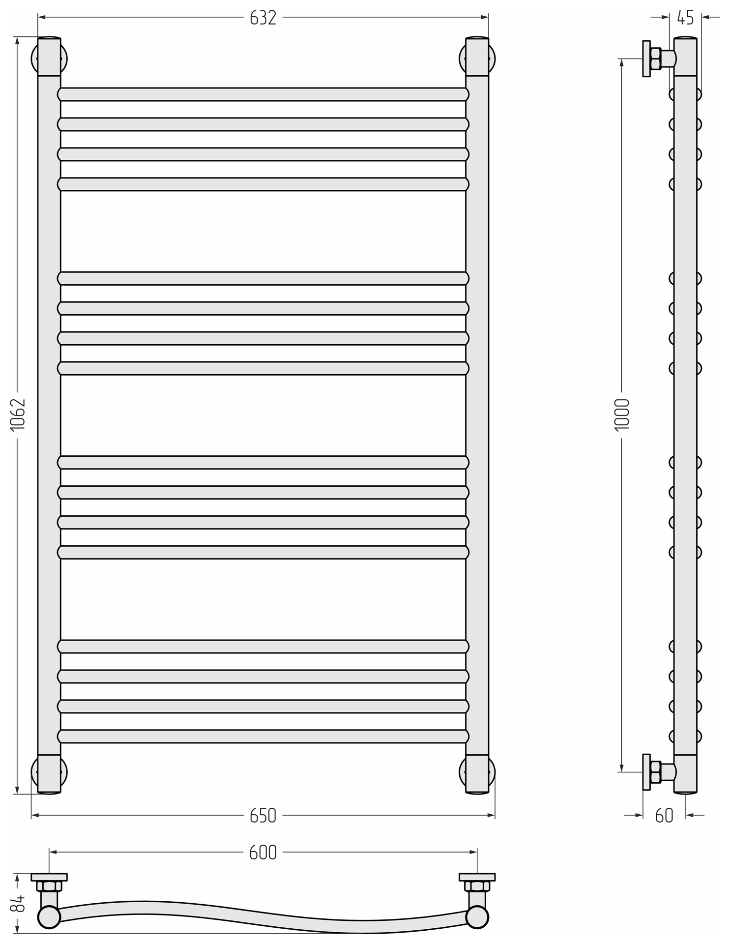 Полотенцесушитель водяной Сунержа Флюид+ П16 600x1060 мм 31-0222-1060, чёрный матовый