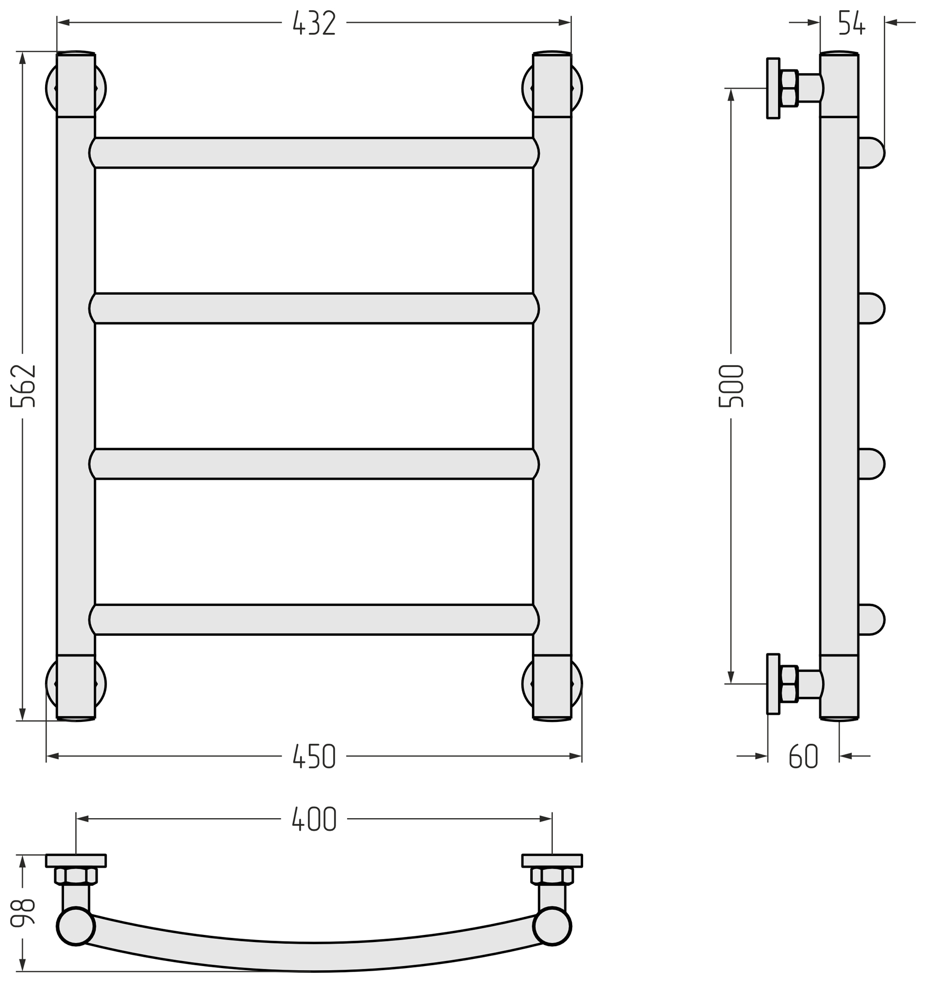 Полотенцесушитель водяной Сунержа Галант+ П4 400x560 мм 15-0200-5040, тёмный титан муар
