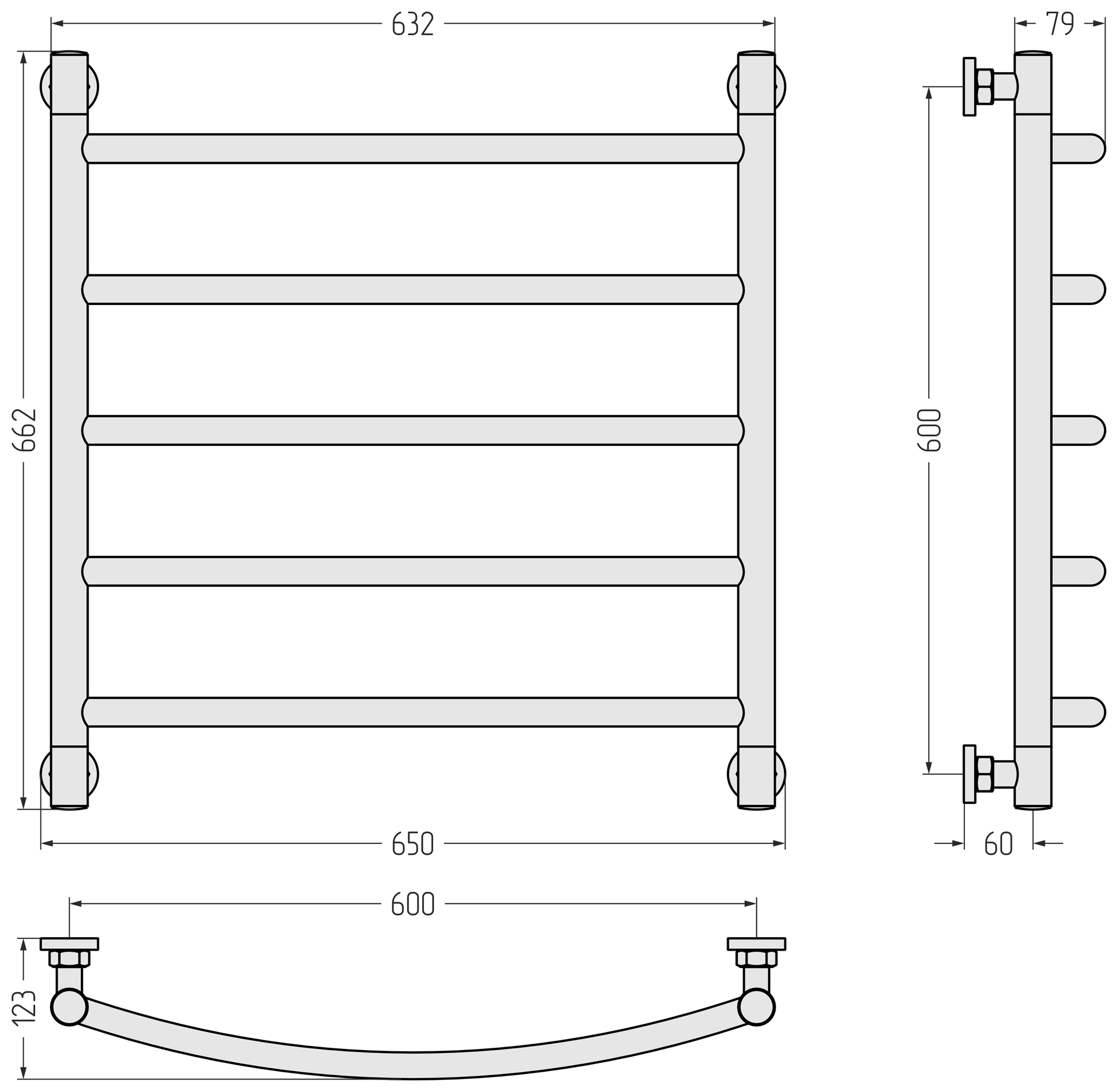 Полотенцесушитель водяной Сунержа Галант+ П5 600x660 мм 071-0200-6060, сатин