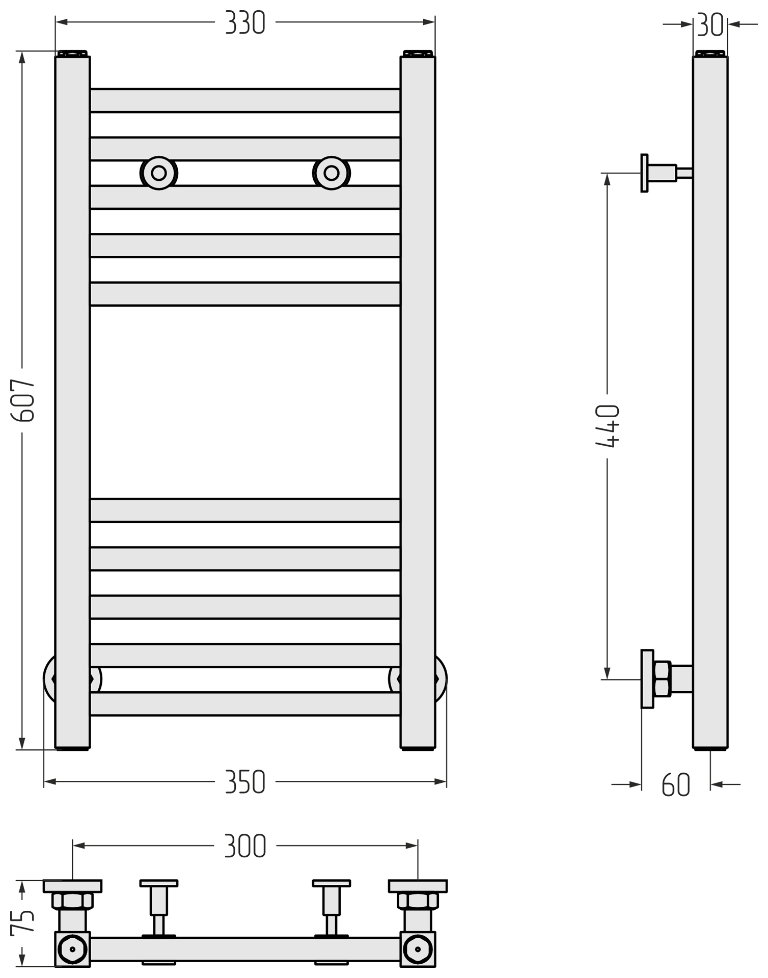 Полотенцесушитель водяной Сунержа Модус П10 300x600 мм 31-0250-6030, чёрный матовый