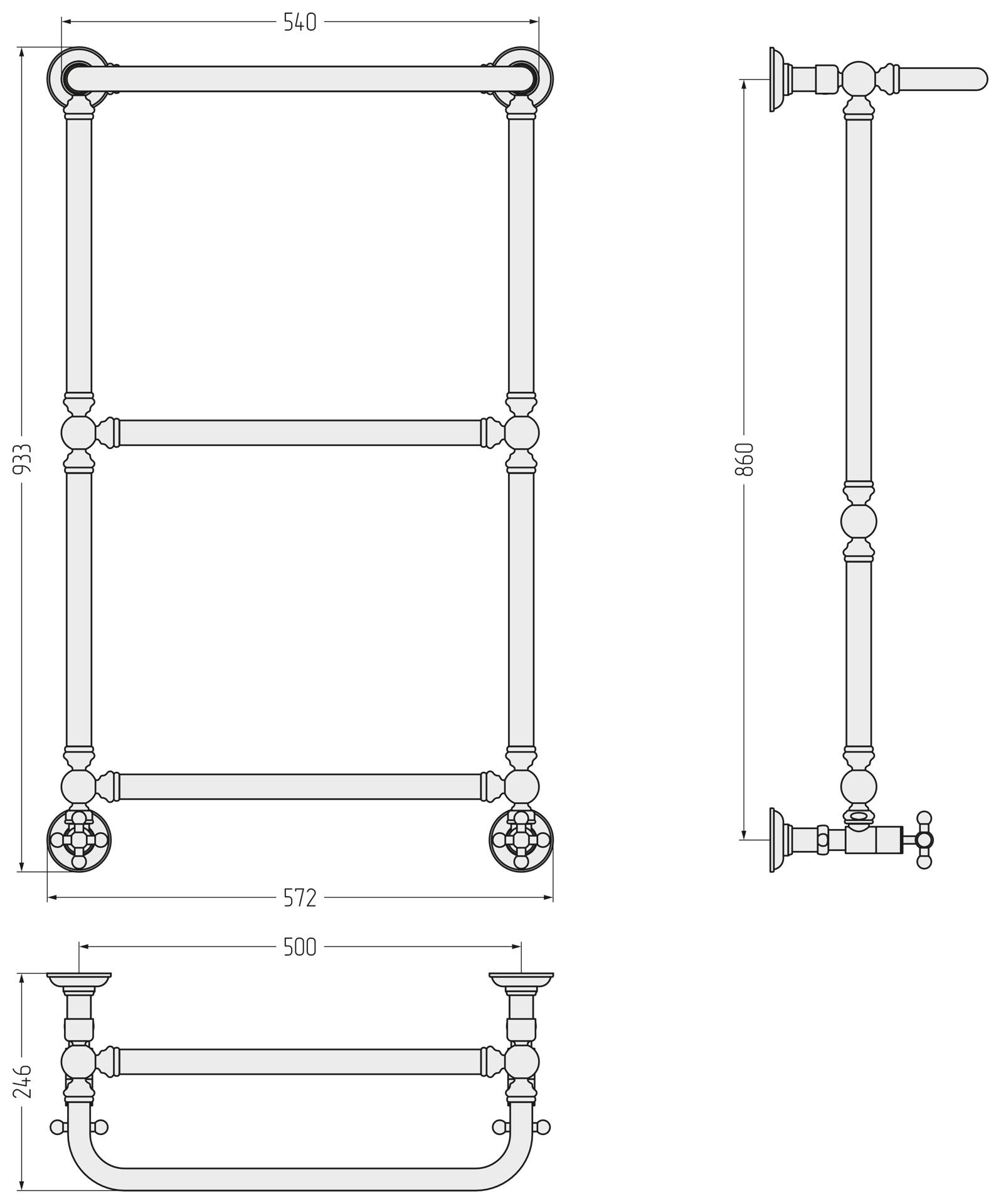 Полотенцесушитель водяной Сунержа Ренессанс П3 500x930 мм 020-0281-8650, шампань