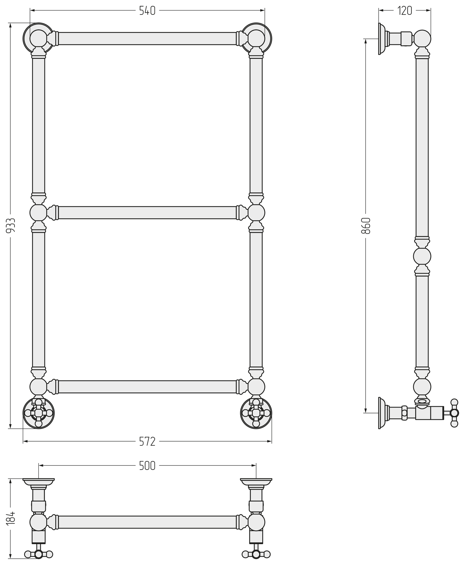 Полотенцесушитель водяной Сунержа Ренессанс П3 500x930 мм 31-0280-8650, чёрный матовый