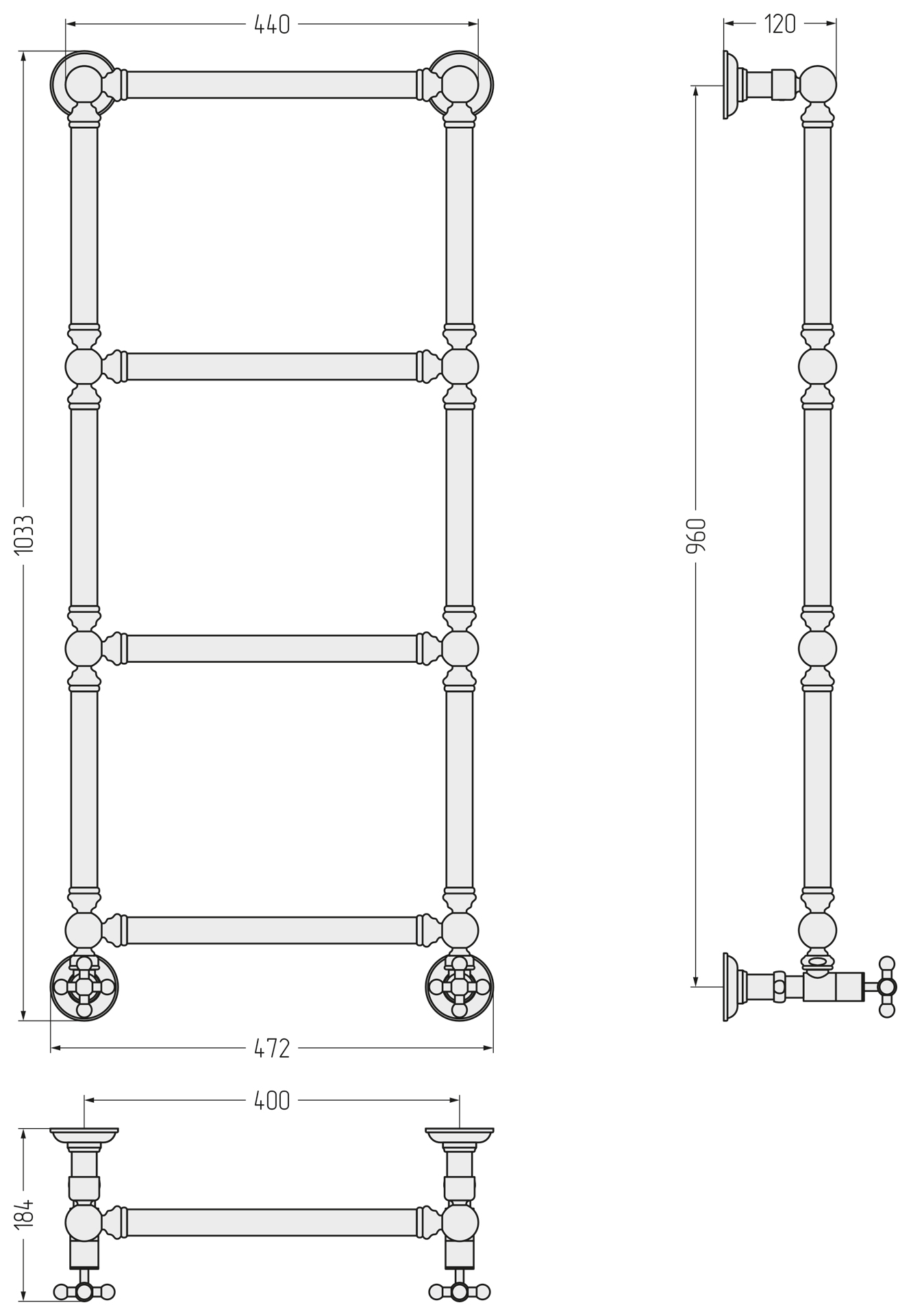 Полотенцесушитель водяной Сунержа Ренессанс П4 400x1030 мм 020-0280-9640, шампань