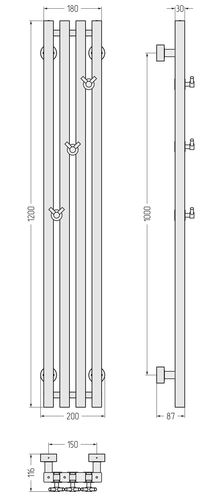Полотенцесушитель водяной Сунержа Сатерленд PRO П4 150x1200 мм 071-0457-1215, сатин