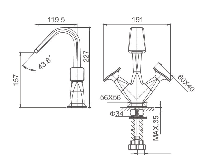 Характеристики смеситель для раковины высокий Wonzon & Woghand (WW-651103-DG)