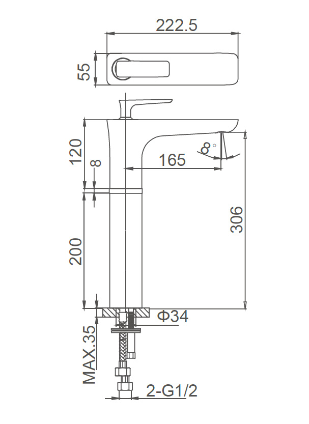 Характеристики смеситель для раковины высокий Wonzon & Woghand (WW-481104-CR)