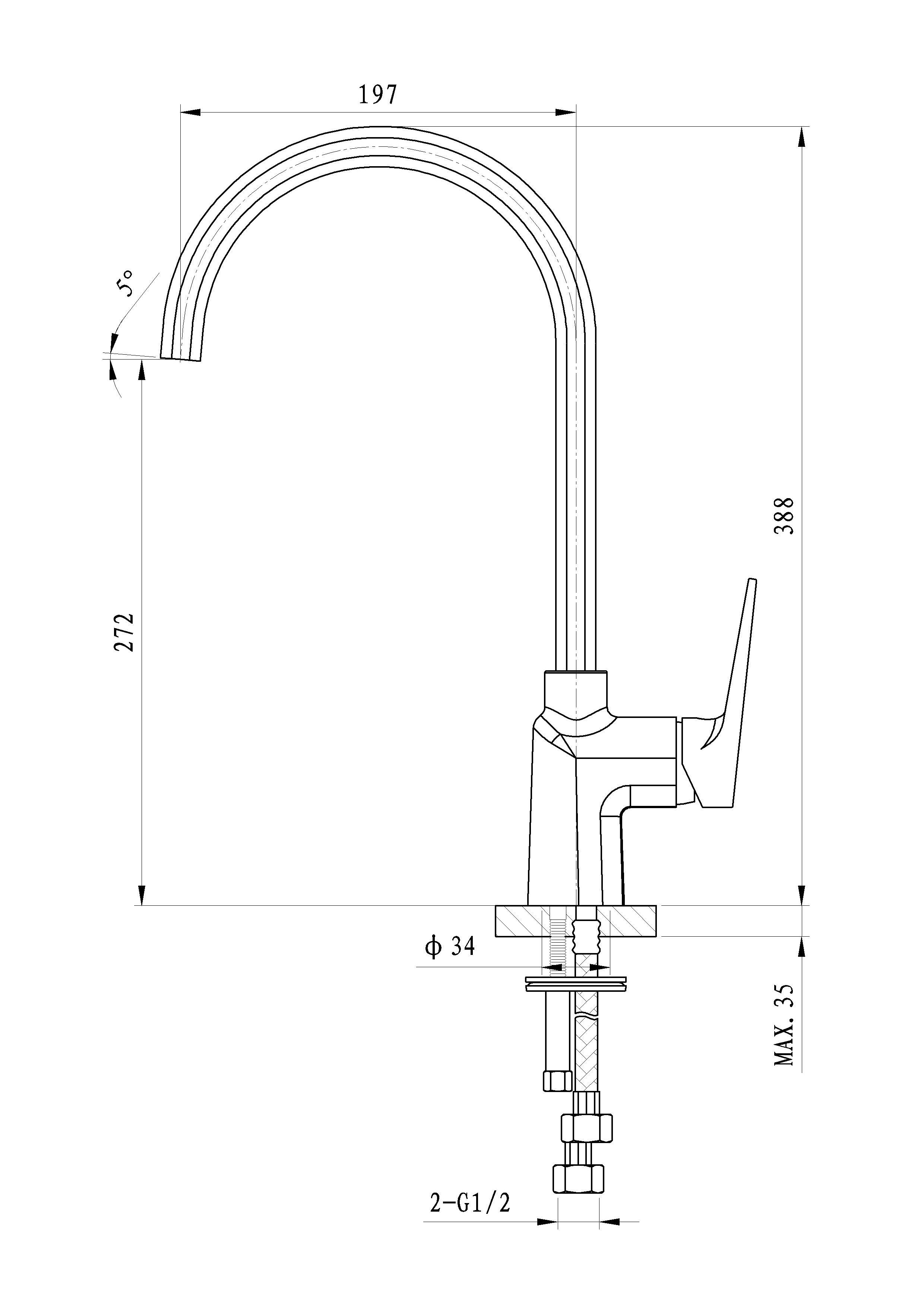 Описание смеситель для кухни Wonzon & Woghand WW-082101-CR