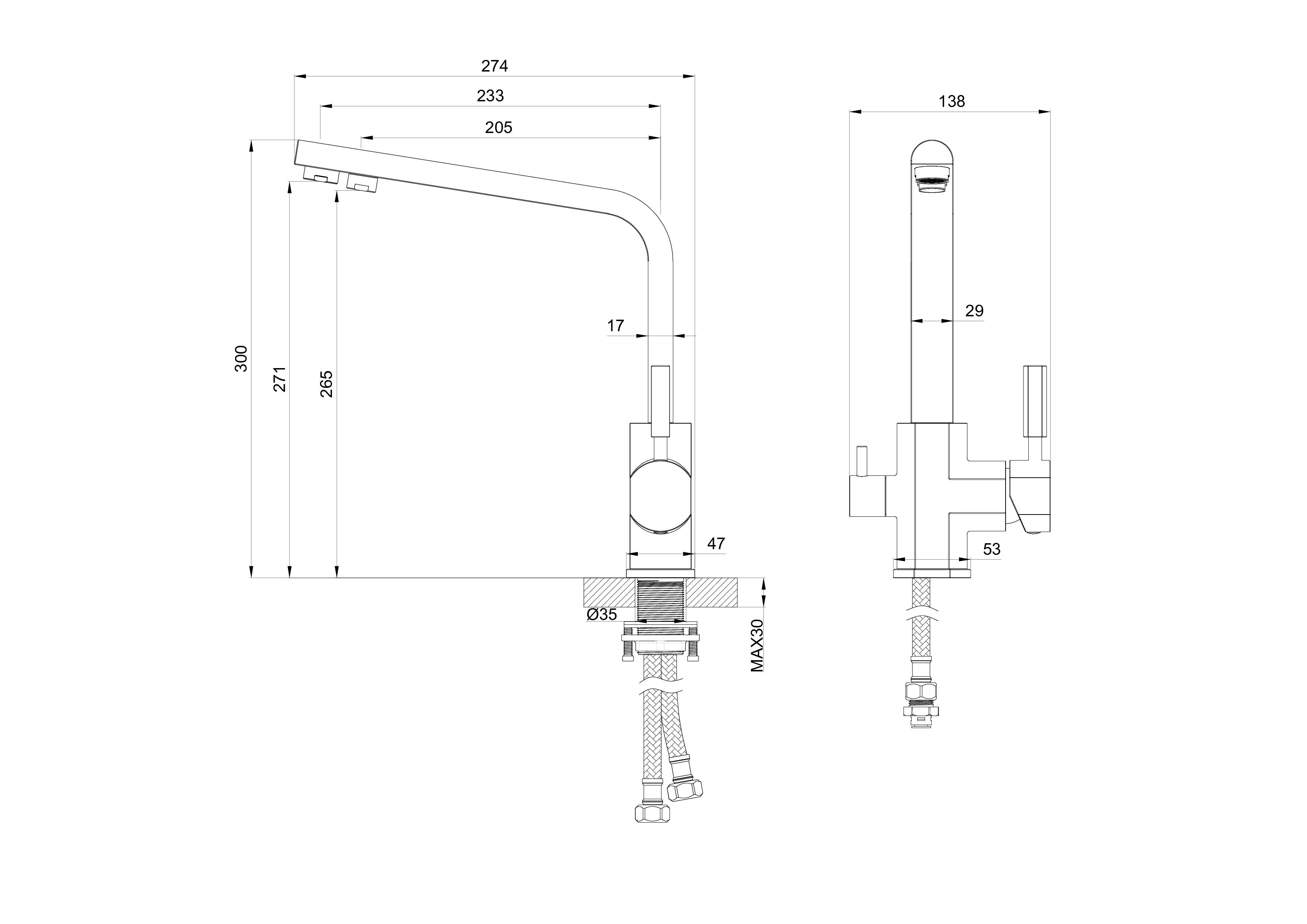 Описание смеситель для кухни с подключением фильтра Wonzon & Woghand WW-88458003-BGM