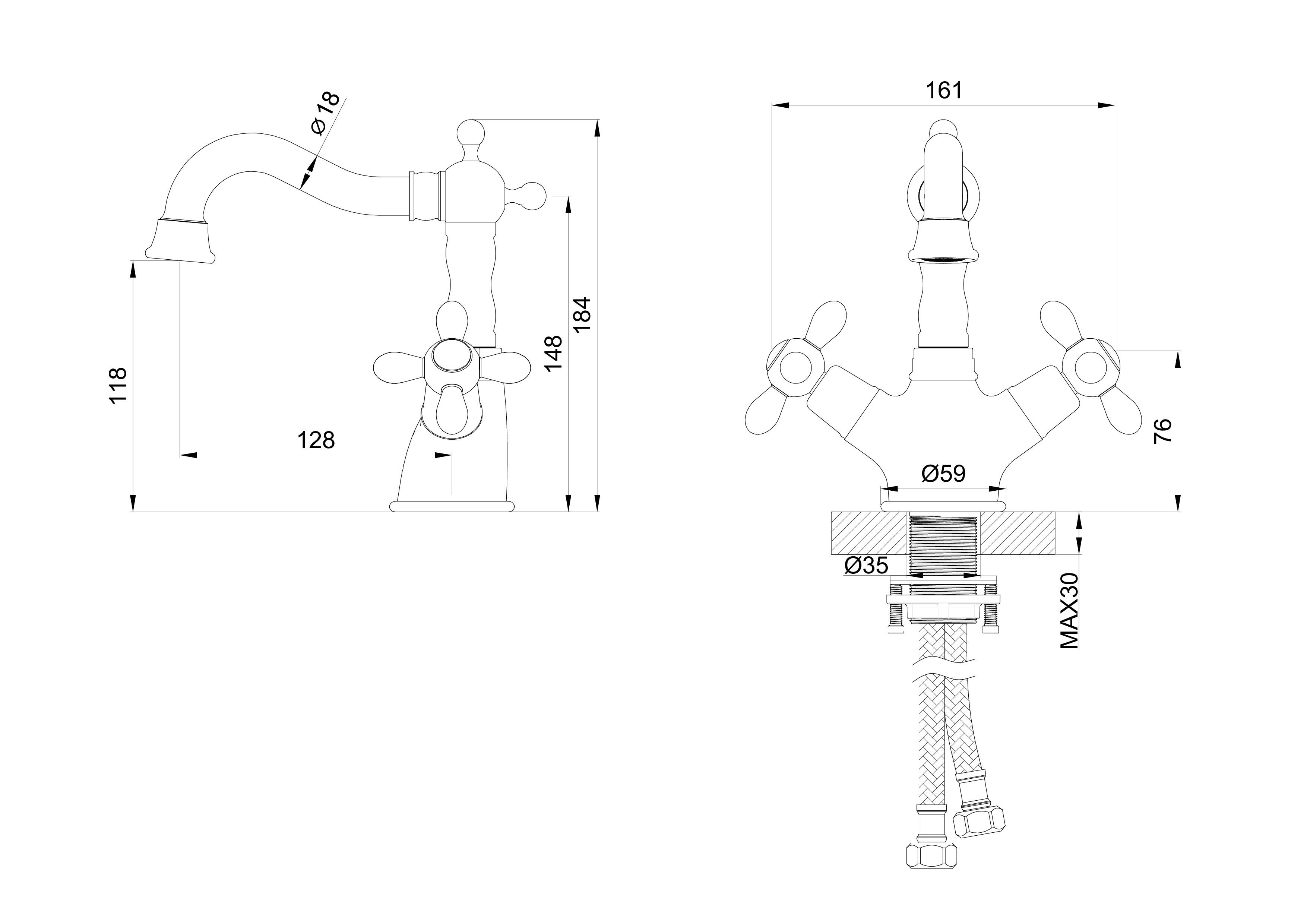 Смесители для раковины Wonzon & Woghand Retro WW-88139020-PG, золото