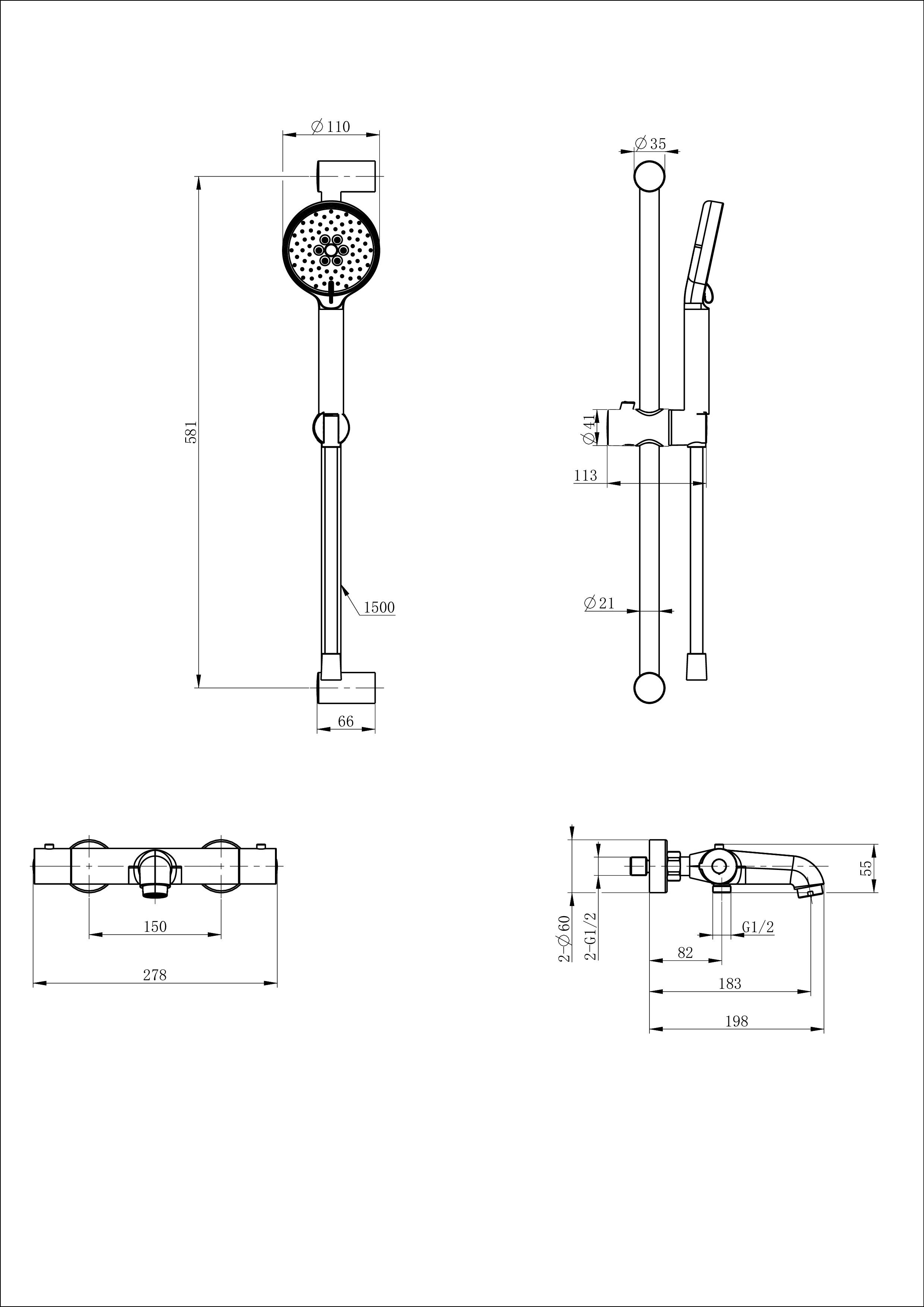 Смесители для ванны с термостатом Wonzon & Woghand WW-C2006-A-BGG, тёмный графит