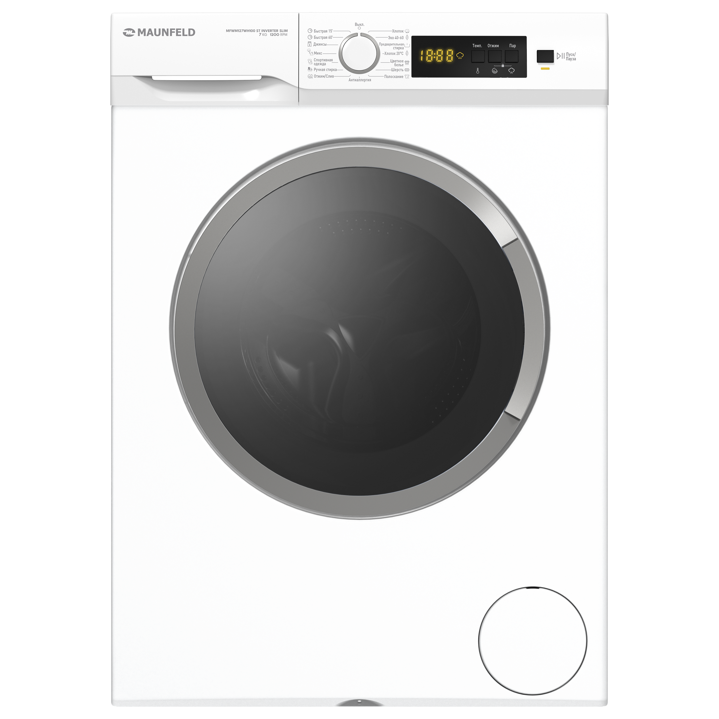 Стиральная машина Maunfeld MFWM127WH100 ST INVERTER SLIM, цвет белый.