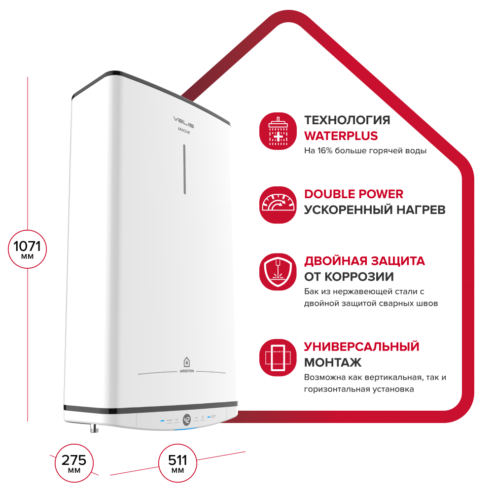 - +16% горячей воды за то же время благодаря технологии WaterPlus
