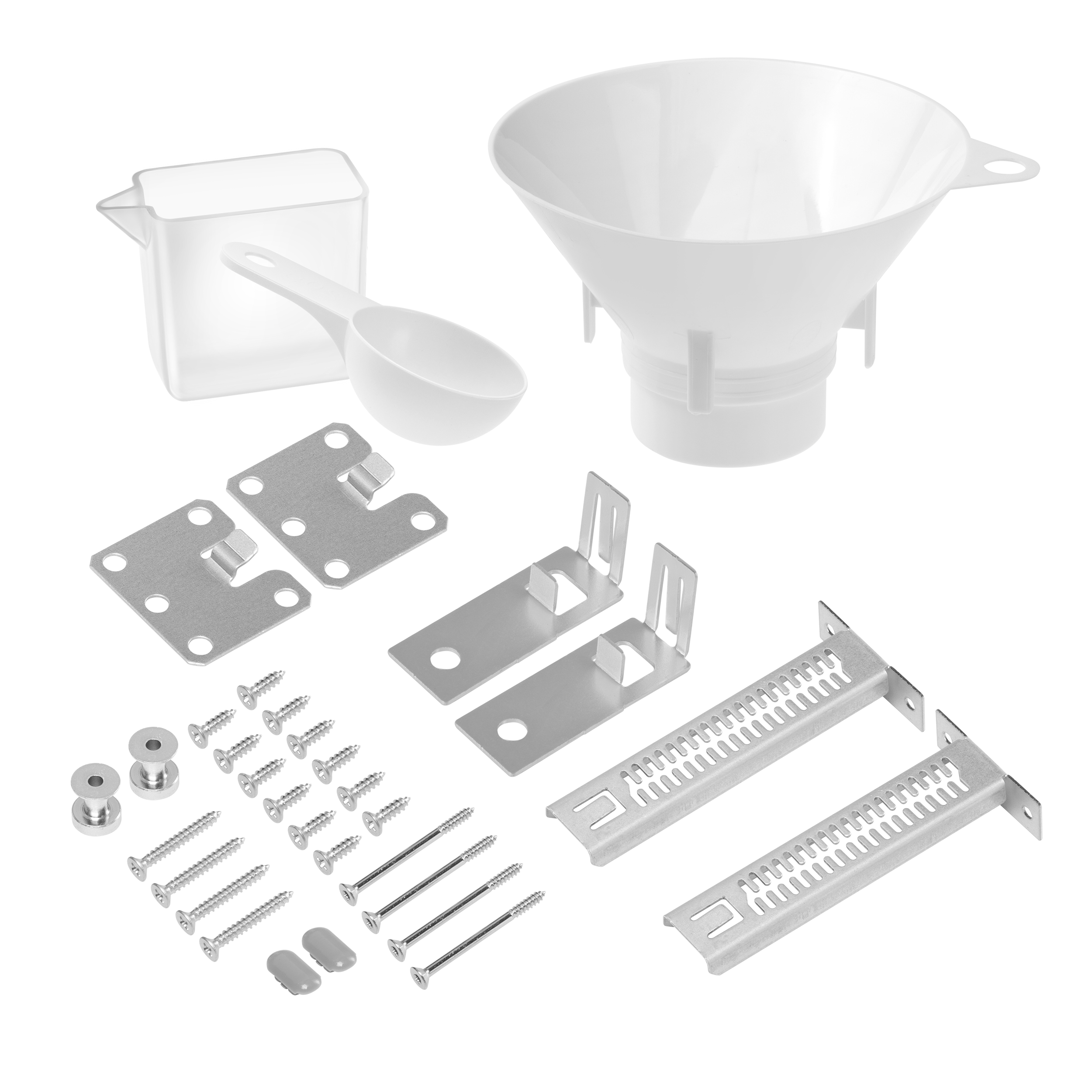 - Комплектация: Корзина для столовых приборов, сливной и заливной шланг, воронка для соли, держатель для шланга