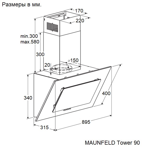 Вытяжка Maunfeld Tower 90 Black (чёрное стекло)