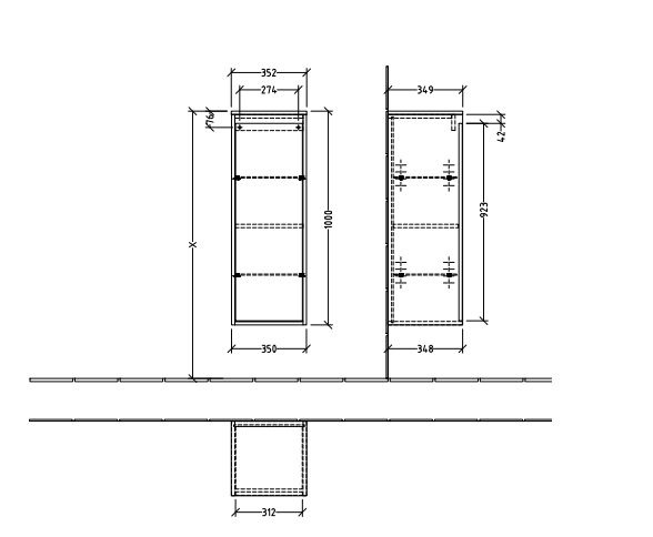 - Габариты (ШxВxГ)-350 x 1000 x 348 мм