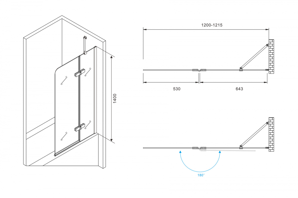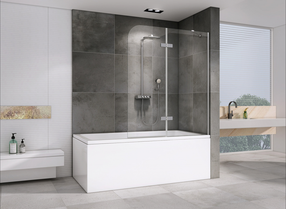 - Распашная шторка на ванну