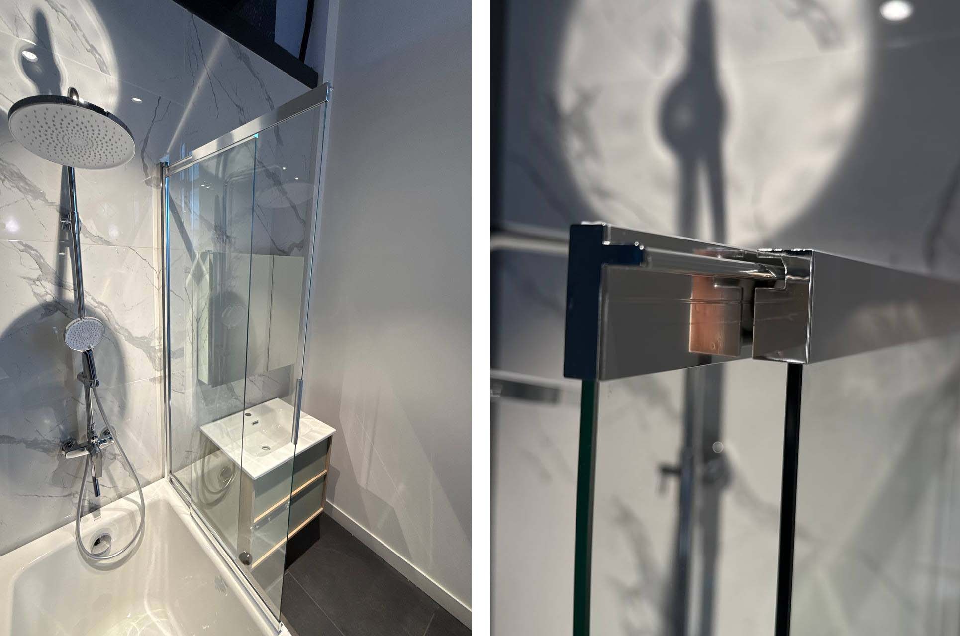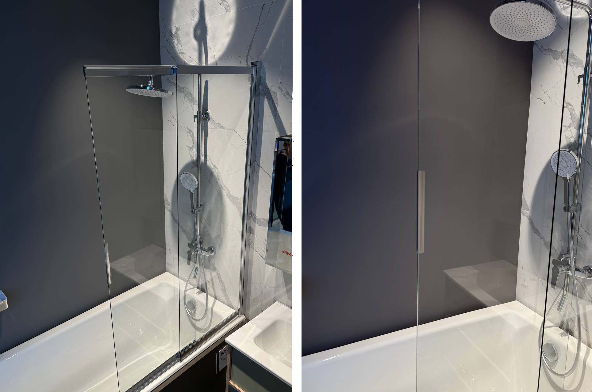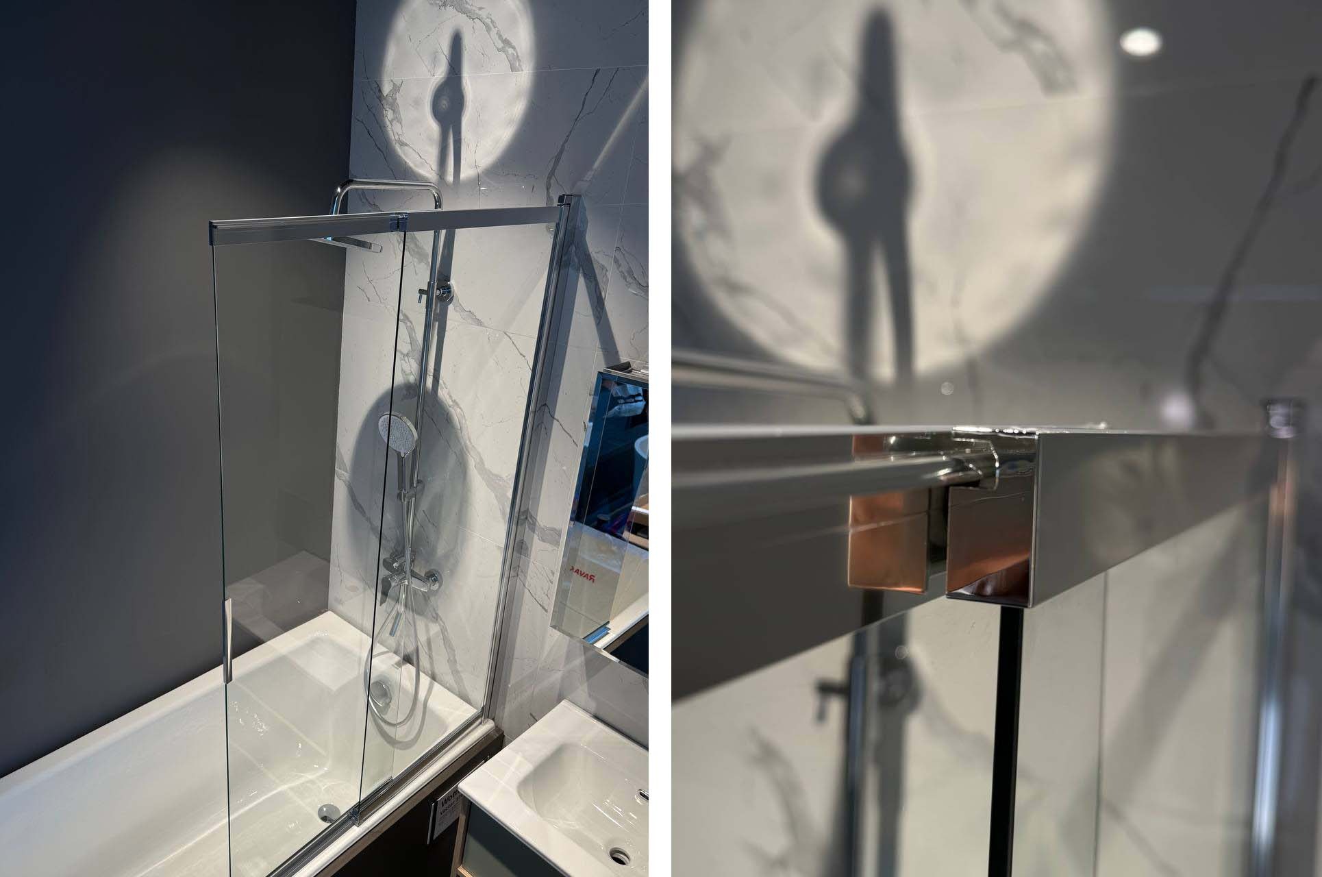 Двухэлементная раздвижная шторка для ванны — простое и очень удобное решение для небольших ванных комнат. Шторка совмещает в себе все преимущества раздвижной и поворотной шторки: шторка состоит из двух полотен, которые легко раздвигаются, обеспечивая комфортный доступ к ванне, и при этом еще и поворачиваются внутрь, дополнительно раздвигая пространство - максимум удобства, минимум занимаемого места. Прочная поворотная шторка из закаленного стекла толщиной 5 мм надежно защищает от брызг, визуально расширяет пространство и служит долгие годы.