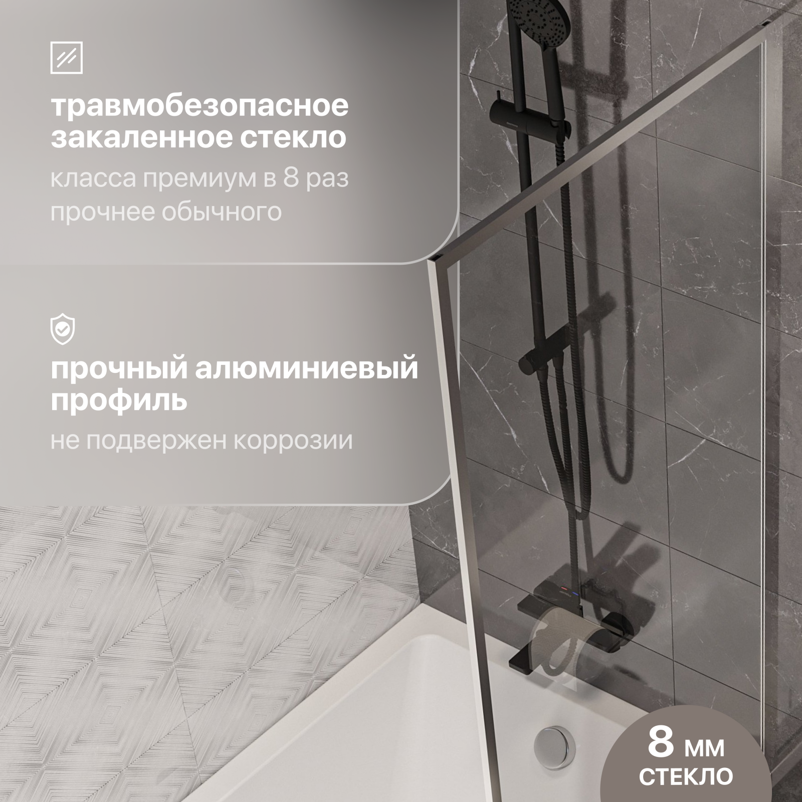 Шторка для ванны Stworki Карлстад 70x140 см MV-KA-70-CR (стекло 8 мм) хром/прозрачное