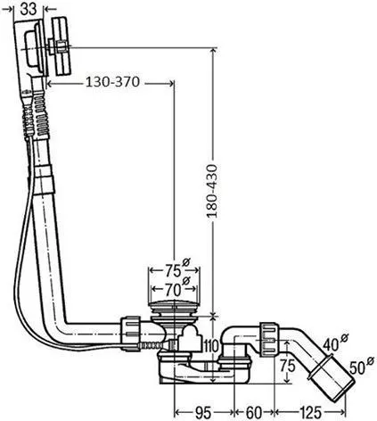 Благодаря своей простоте и элегантности комбинированная гарнитура слива-перелива для ванн с отверстием слива 52 мм идеально подходит для любых ванных комнат. Пропускная способность гарнитуры достигает 0,92 л/с при высоте гидрозатвора 50 мм. Гибкий корпус перелива и глубина его установки, составляющая всего лишь 33 мм, обеспечивают легкий монтаж даже при узких краях ванны. Длина троса Боудена составляет 725 мм и совместима со многими нашими ваннами.