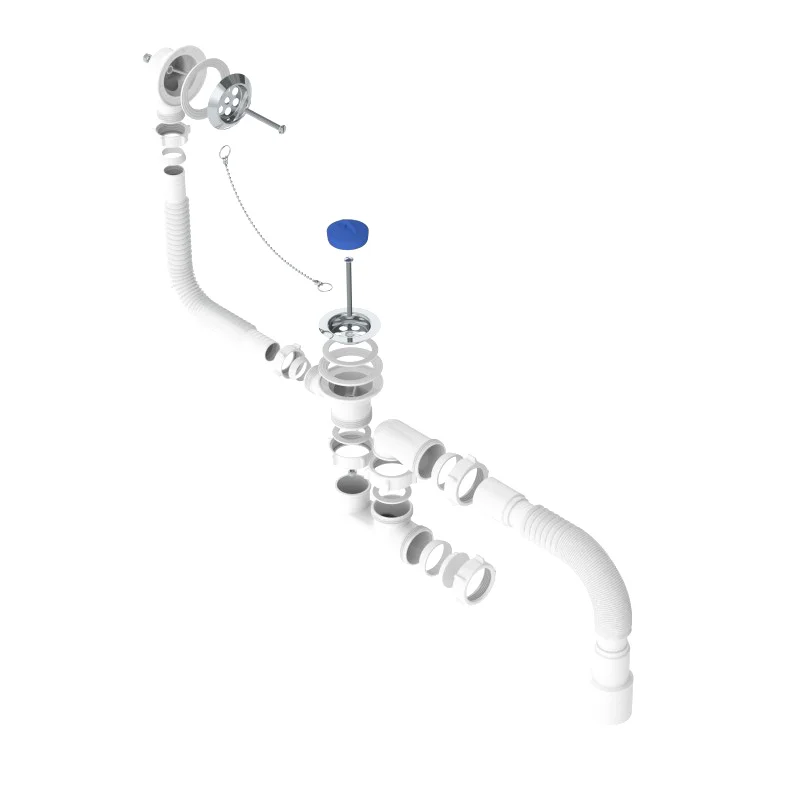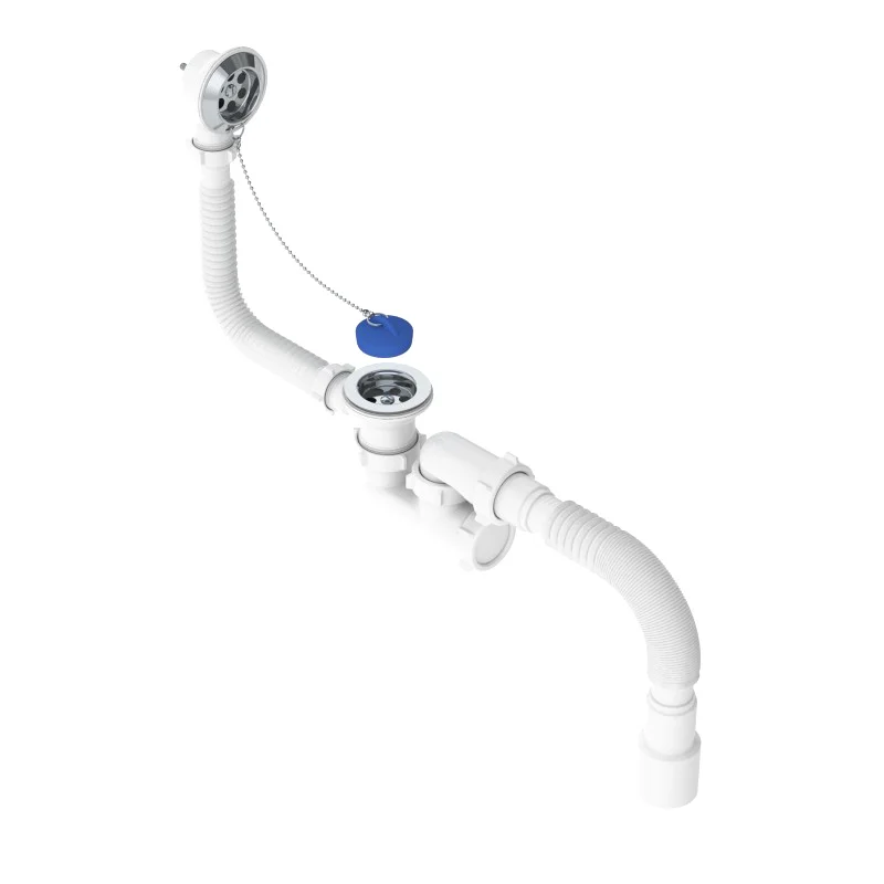 Сифон для ванн регулируемый. Выпуск с решеткой из нержавеющей стали Ø70мм спроектирован под стандартный диаметр сливного отверстия ванн Ø50мм. Подходит для всех типов ванн. Решетка крепится на винт 60 мм и шестигранную гайку М6. Перелив с трубкой длиной 50 см и металлической решеткой. Колено сифона регулируемое с высотой гидрозатвора 50 мм, имеет ревизионное отверстие, заглушенное прокладкой и гайкой, для легкой прочистки сифона без его демонтажа, а Г-образная трубка отвода позволяет направить гофротрубу слива в нужную сторону. Артикул идет в комплекте с гофротрубой с универсальным выходом в канализацию 40х40/50 мм. и прокладкой-бабочкой из термоэластопласта (ТЭП), который не вступает в реакцию в акриловыми ваннами. Пробка для перекрытия воды из ТЭПа, на цепочке. Полная комплектация, все гайки, прокладки и схема установки в комплекте. Скорость слива: 25 л/мин.