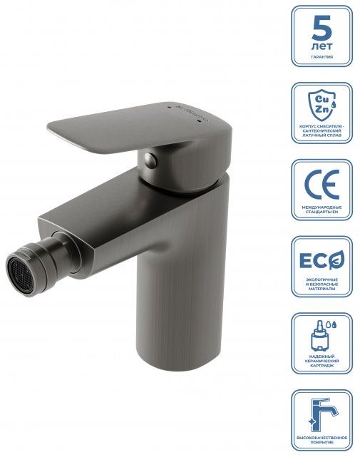Смеситель для биде BelBagno DUE-BD-GM-W0, оружейная сталь