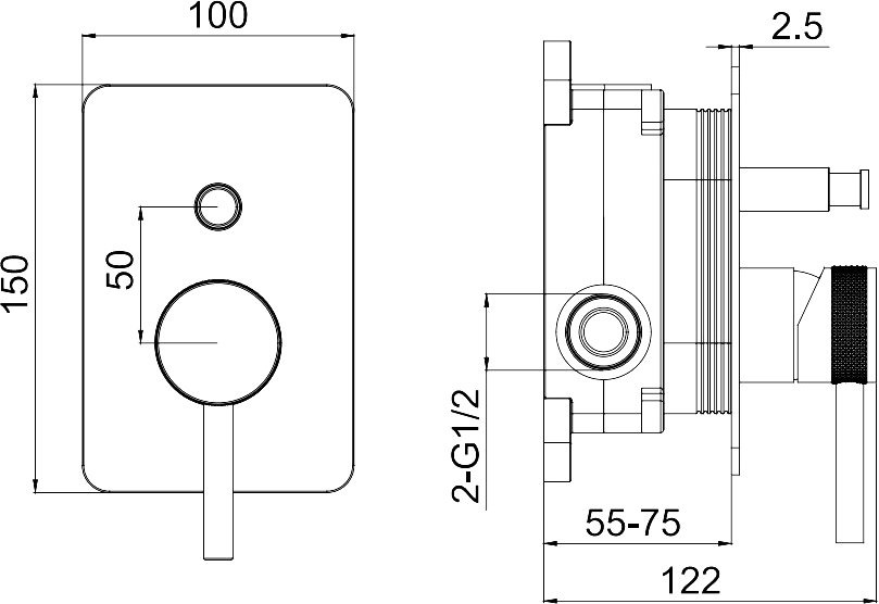 - Встраиваемый смеситель на 2а потребителя воды, дополнительно приобретается оборудование на 2а потребителя (Пример: №1 верх.душ + №2 душевой набор с водорозеткой ИЛИ другие комбинации из 2х элементов)