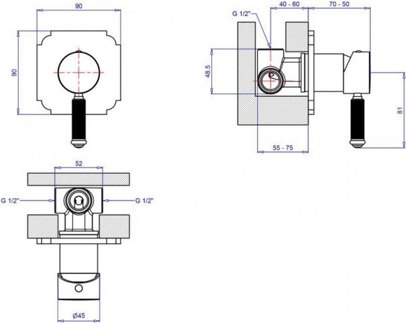 - Тип подводки: внутренний (скрытый) монтаж 1/2"