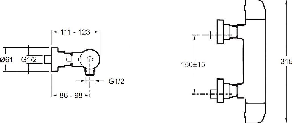 Смеситель для душа с термостатом Jacob Delafon Villette E23720-CP, материал латунь, цвет хром.