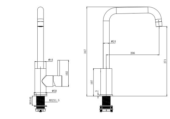 - оснащен высоким изливом, удобен для мытья крупных предметов