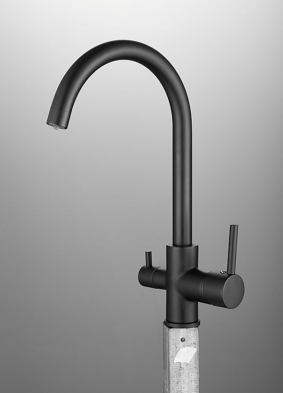 Смеситель для кухни Belz B76801-7 с подключением фильтра и поворотным изливом, материал латунь, цвет чёрный.