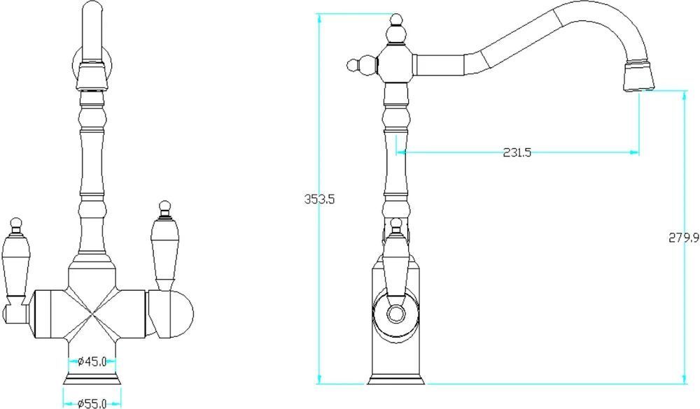 Смеситель для кухни Boheme Tradizionale с подключением фильтра и поворотным изливом, материал латунь, цвет chrome