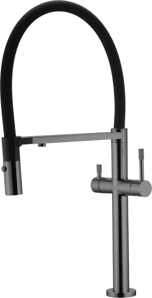 Смеситель для кухни Boheme Uno с гибким и поворотным изливом, материал латунь/силикон, цвет shine gun metal