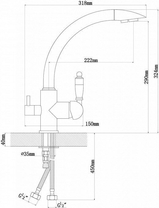 Описание смеситель для кухни,смеситель для кухни с подключением фильтра Florentina 333.27H.2113.720