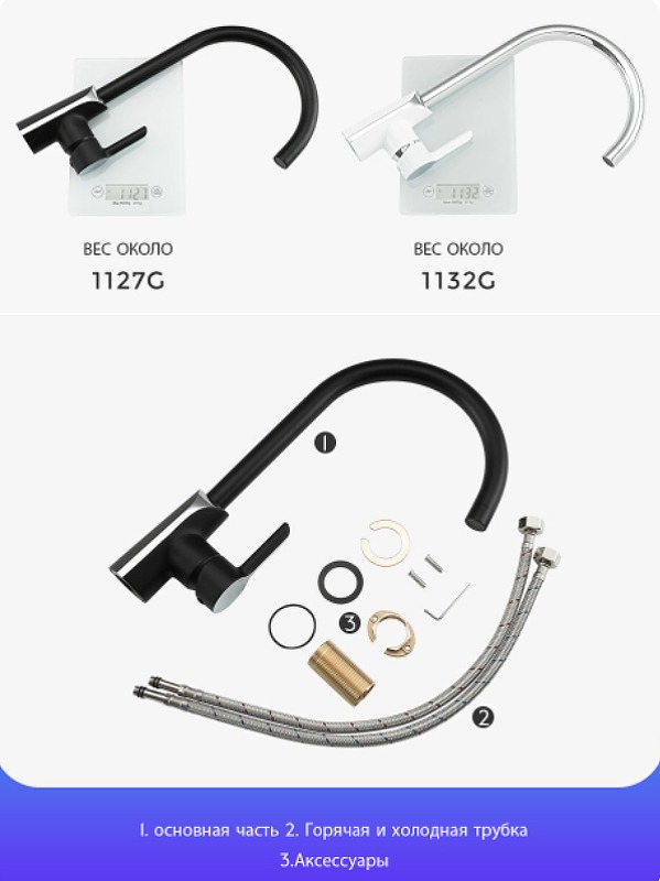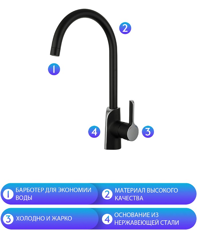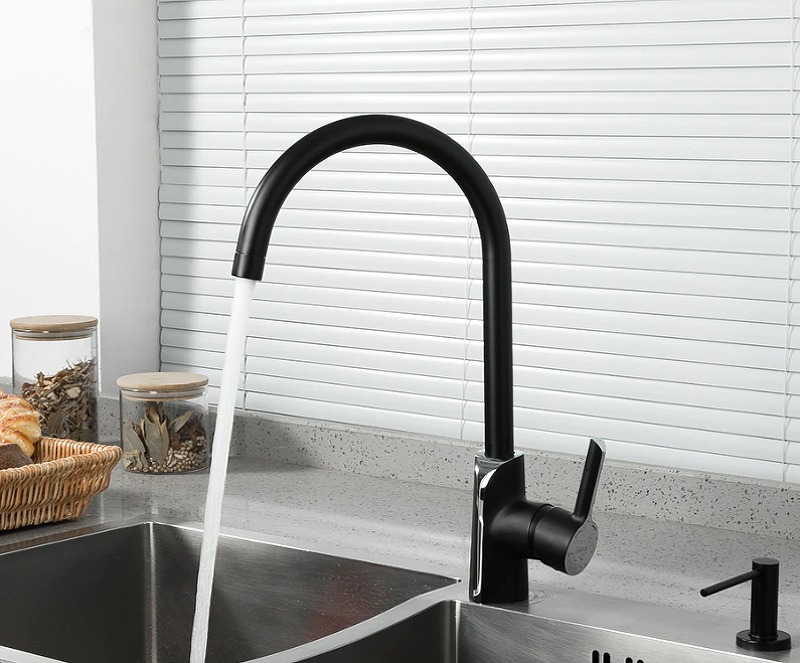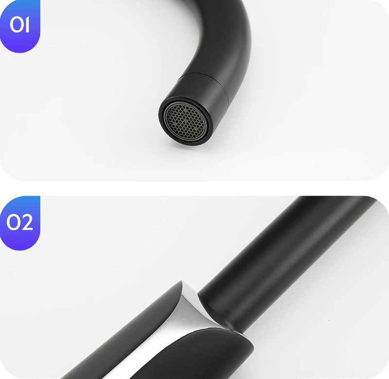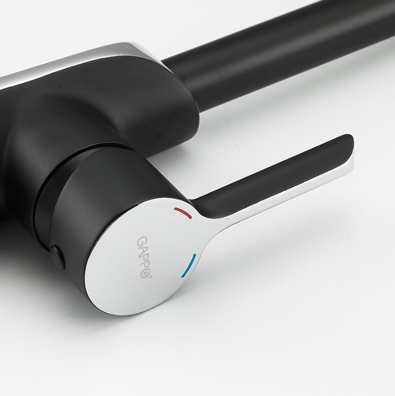 Смеситель Gappo G4003-6 приятного дизайна, исполнен в черном стиле. Красиво будет смотреться в интерьере кухни. Аэратор предотвращает распространение брызг. Подходит для глубоких моек. К выходам труб подключается гибкими подводками, которые идут в комплекте.