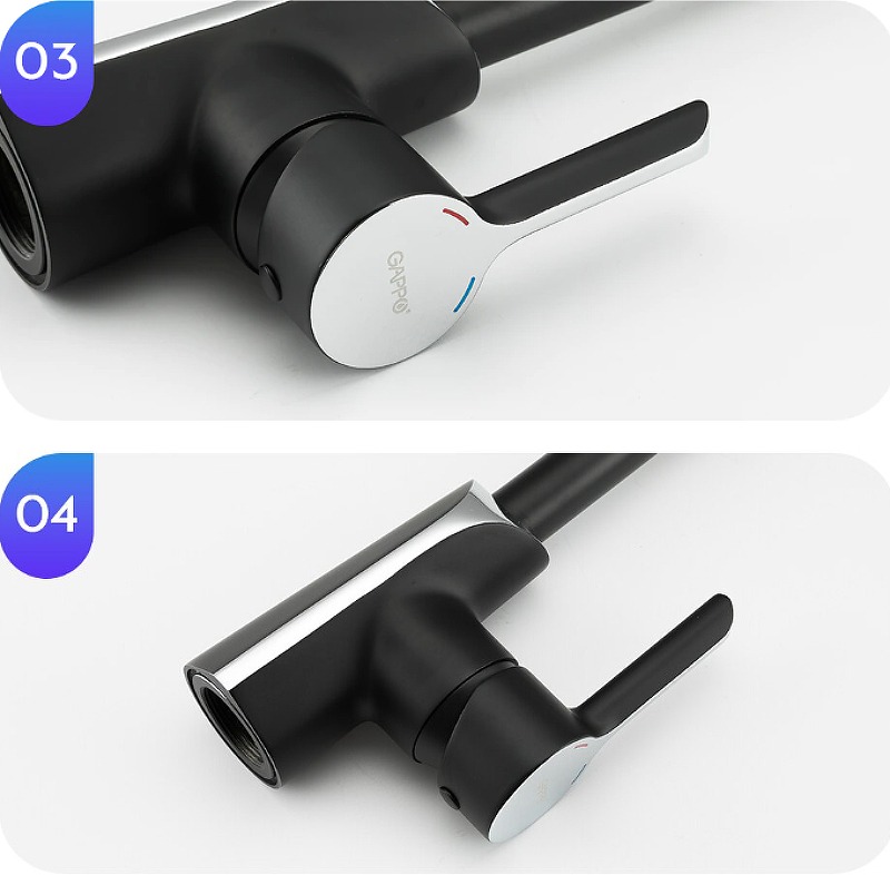Смеситель для кухни Gappo G4003-6, черный/хром